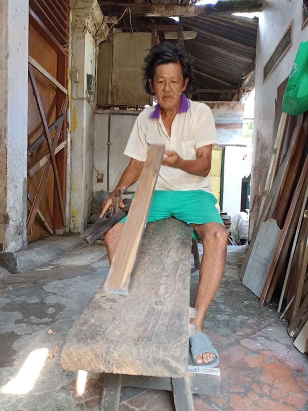 Now, Akong Sing lives alone in a narrow alley, behind an abandoned house that has no electricity. Each night, he lights a single candle to keep away the darkness as he tries to sleep. At his age, he should be resting, but instead he still works tirelessly. He spends his days handcrafting wooden chairs, hoping someone will buy them. But more often than not, the chairs pile up unsold for months, leaving him without food or money.
