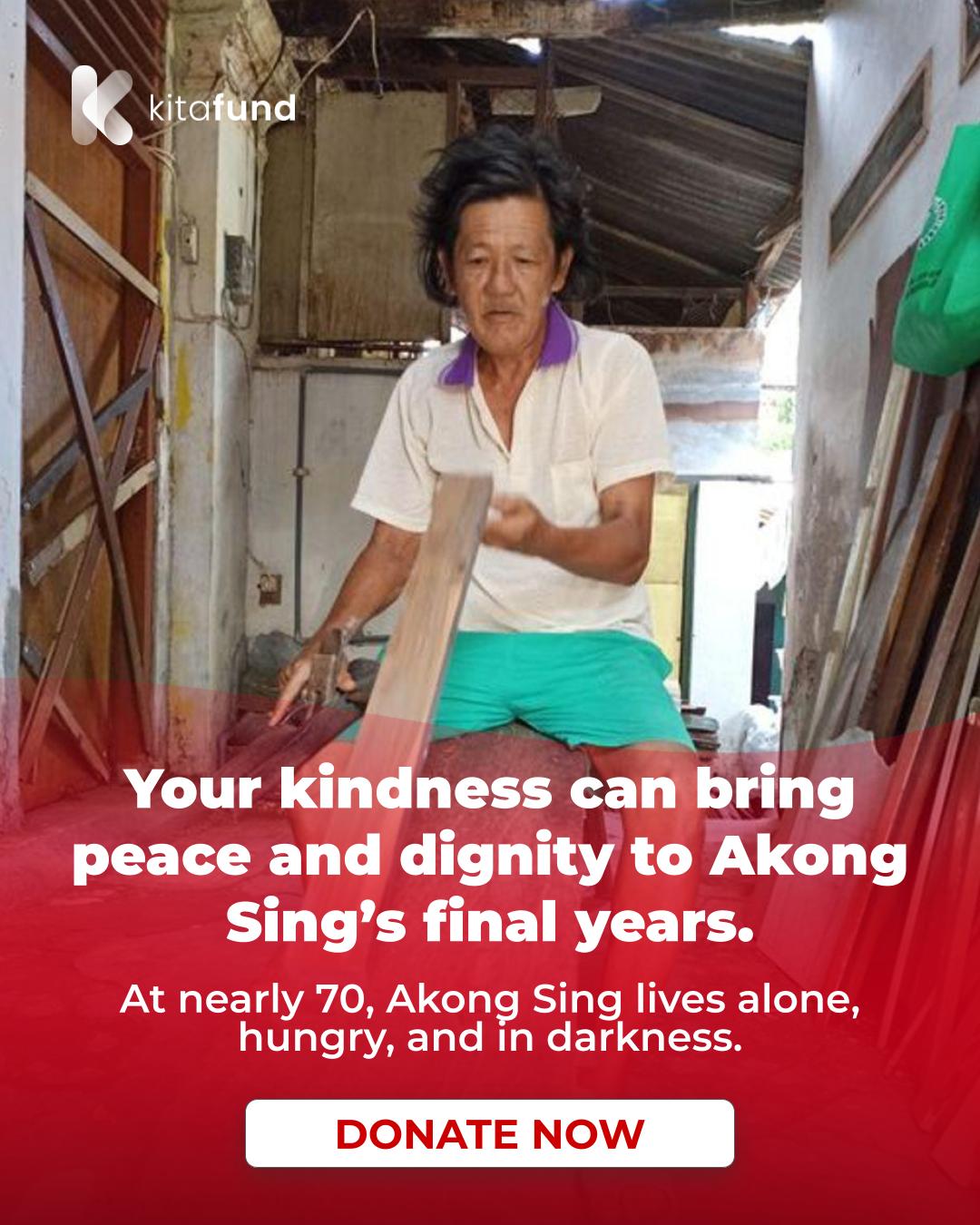 At nearly 70 years old, Akong Sing shouldn’t have to fight this hard just to survive. Yet here he is — alone, with no family by his side, struggling to keep going. #KindSouls, together we can help ease the burden of this elderly man who has carried so much sorrow in silence.
