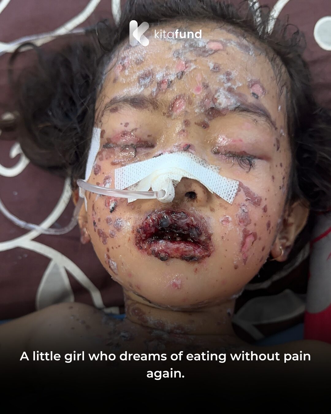 Khiyani Alisa, a 5-year-old only child, is courageously battling a severe chronic skin disease that has affected her face. The condition has caused significant damage to her lips, making it difficult for her to eat. She now relies on a feeding tube for nutrition.