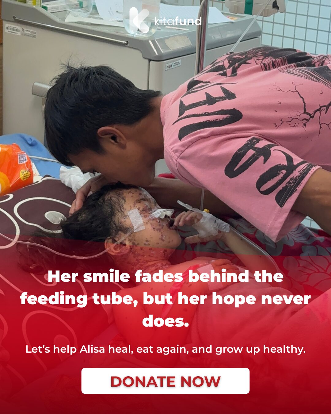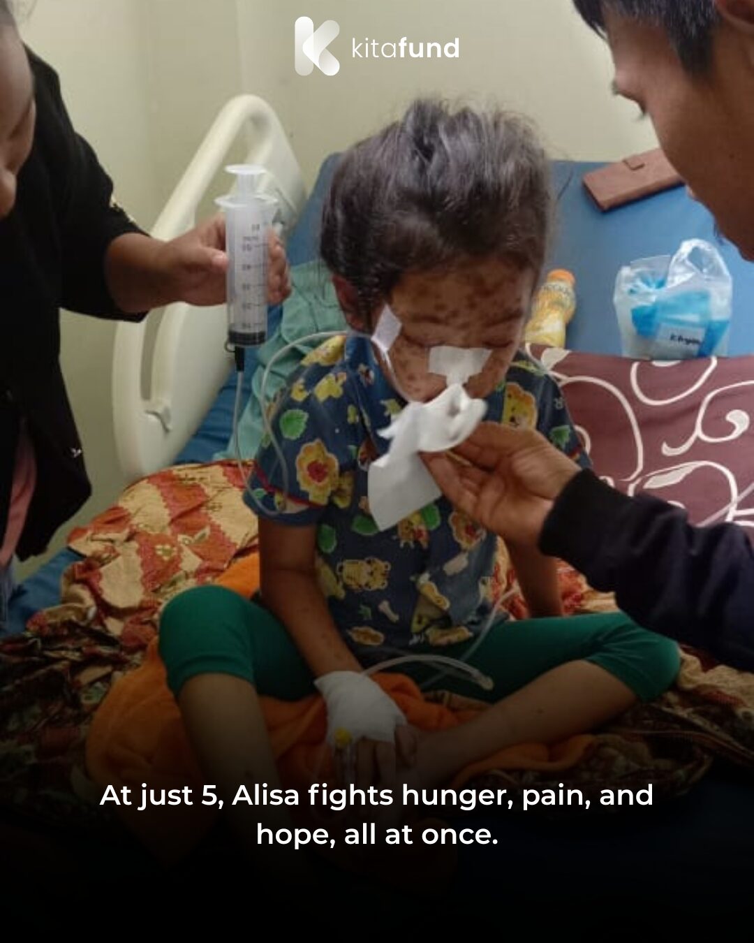 Although some of her medical expenses are covered by insurance, many essential needs such as hospital operational costs, transportation, and Alisa’s nutritional supplements are not. As a result, the family struggles to provide her with proper nutrition, and she often survives only on water.