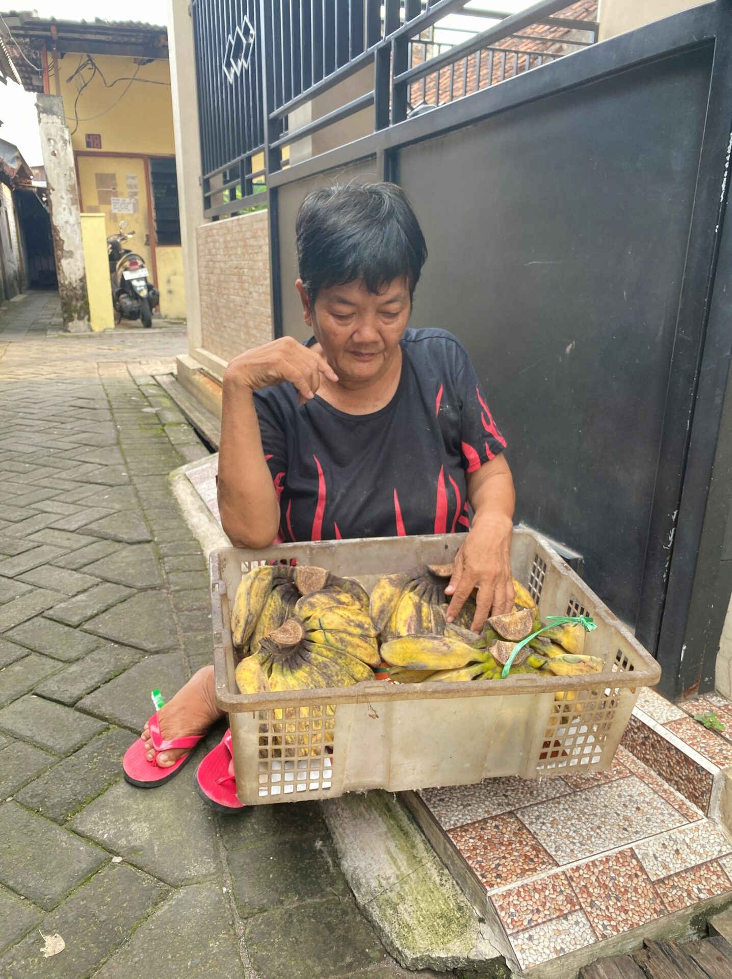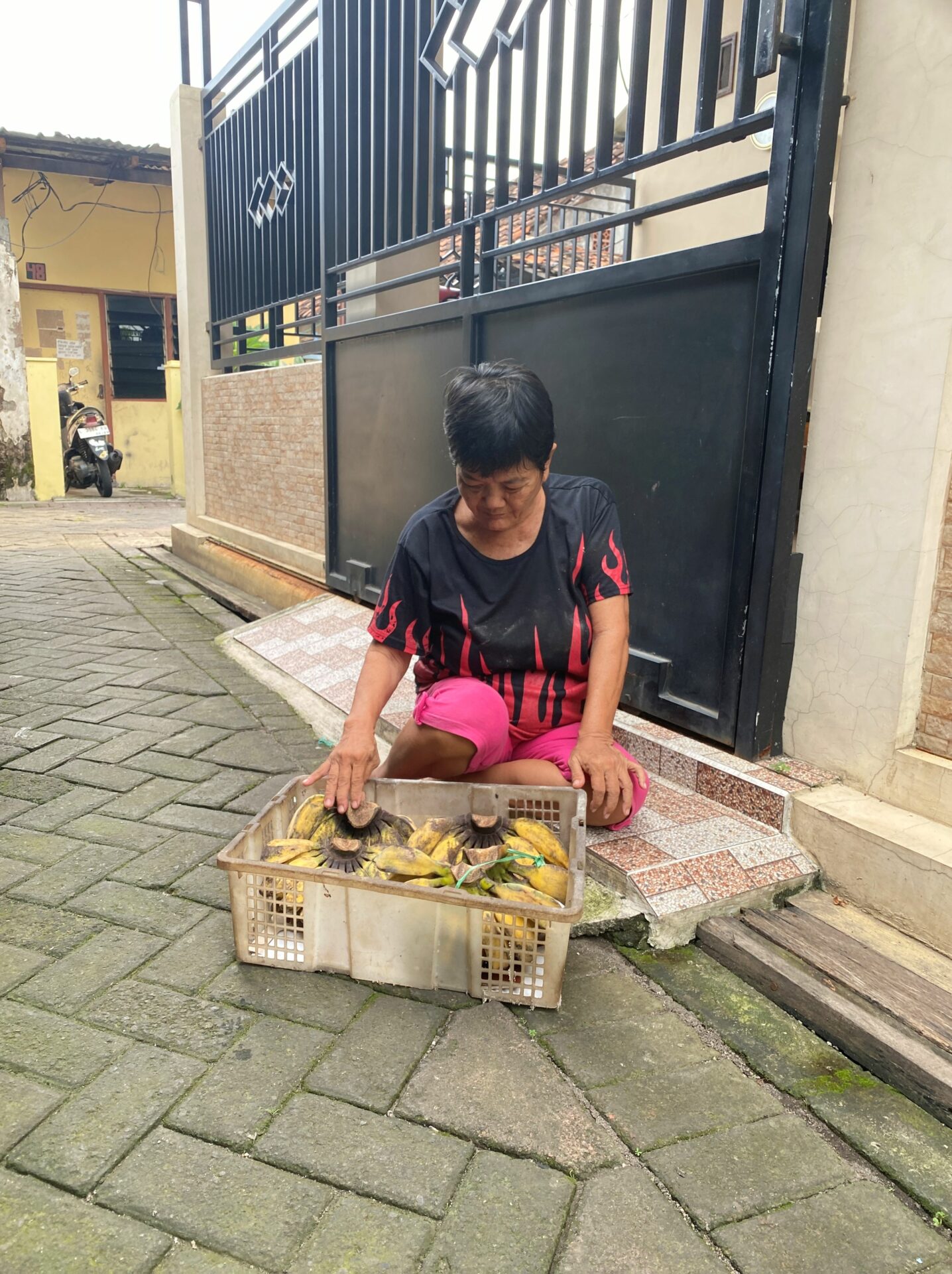 “Bananas… please buy some bananas,” she calls out softly as she goes from house to house.