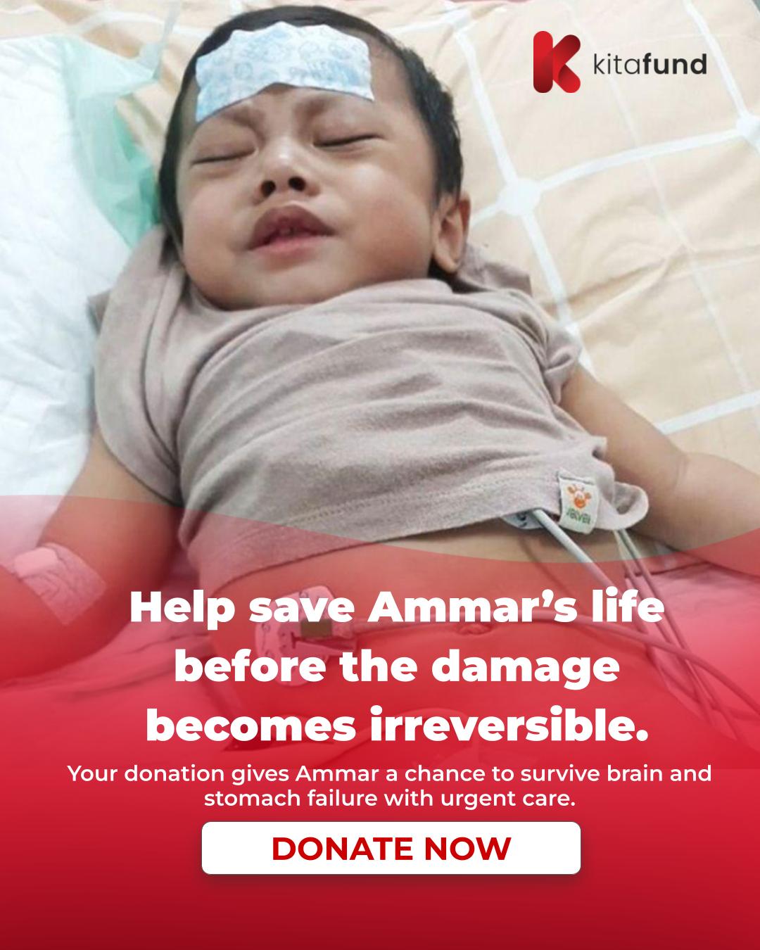 Born prematurely with lungs on the verge of rupturing, Ammar was once declared clinically dead but miraculously came back to life. Sadly, his struggles didn’t end there—his brain and stomach are now severely damaged.