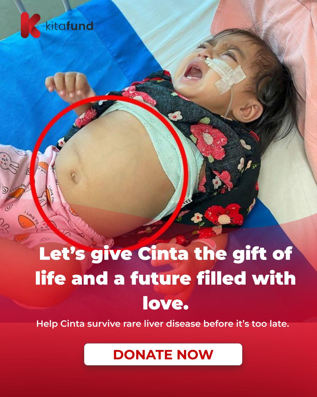 Her bile ducts are now destroyed, her stomach continuously swelling to the point of nearly rupturing. Without an urgent liver transplant and long-term intensive care, Cinta’s life hangs by a thread.