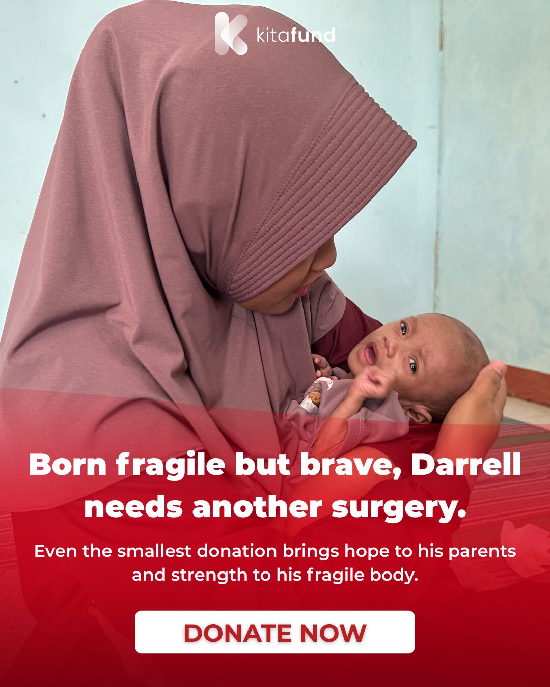 Darrell — that’s how this tiny baby boy is lovingly called. He is the first child of Mr. Dino and Mrs. Siska. At only 4 months old, his body has already become frail and severely underweight.