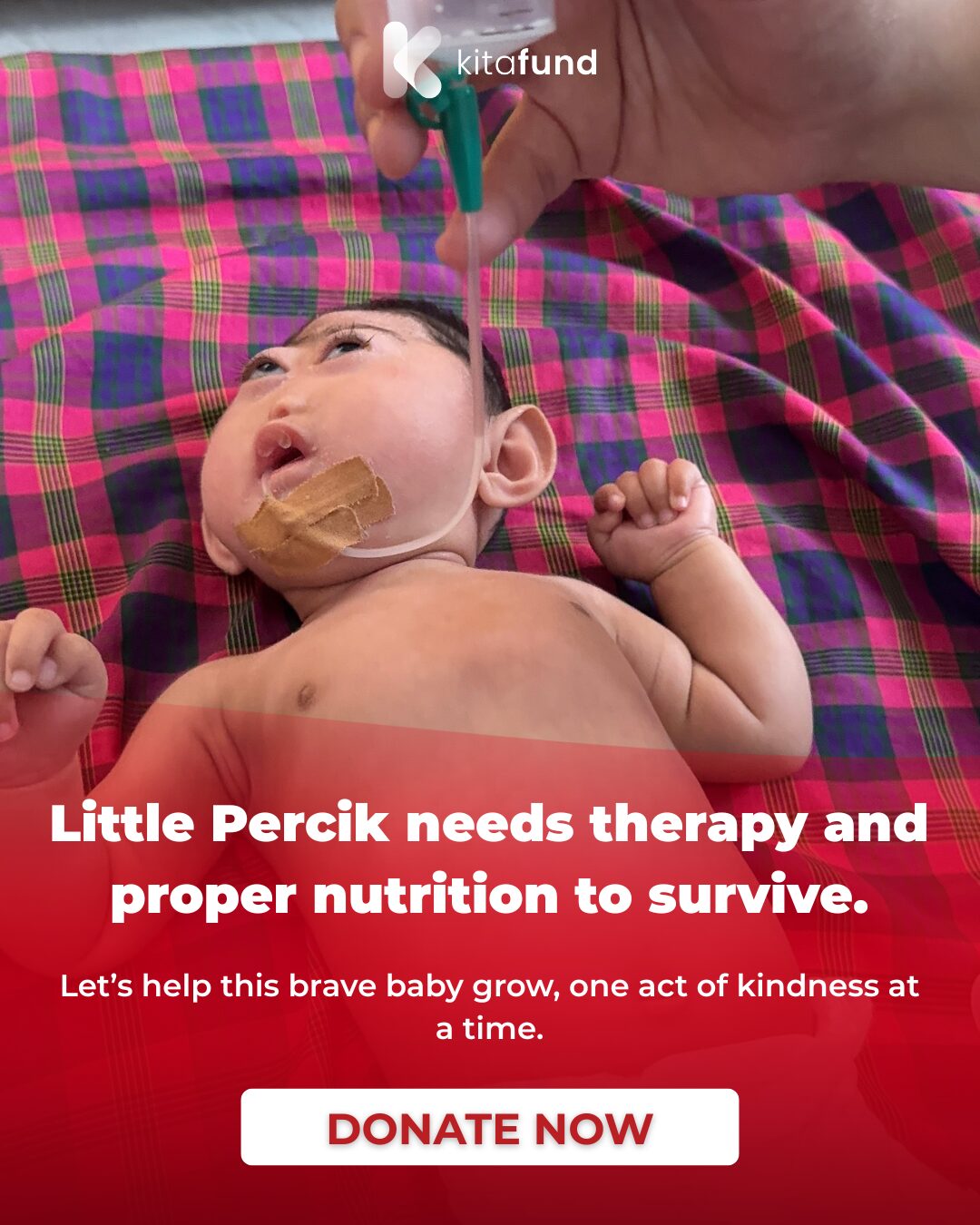Thank you for reading this post, don't forget to subscribe!Born with cerebral palsy, microcephaly, and other complications, 5-month-old Percik Cahaya looks very different from other babies his age. His head is small, and his facial features — especially his eyes and nose — did not form properly.