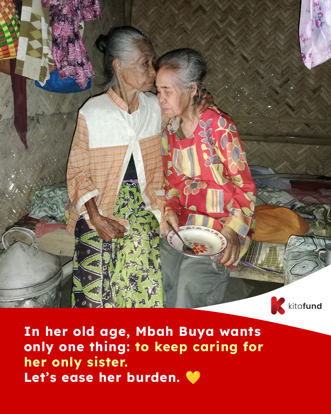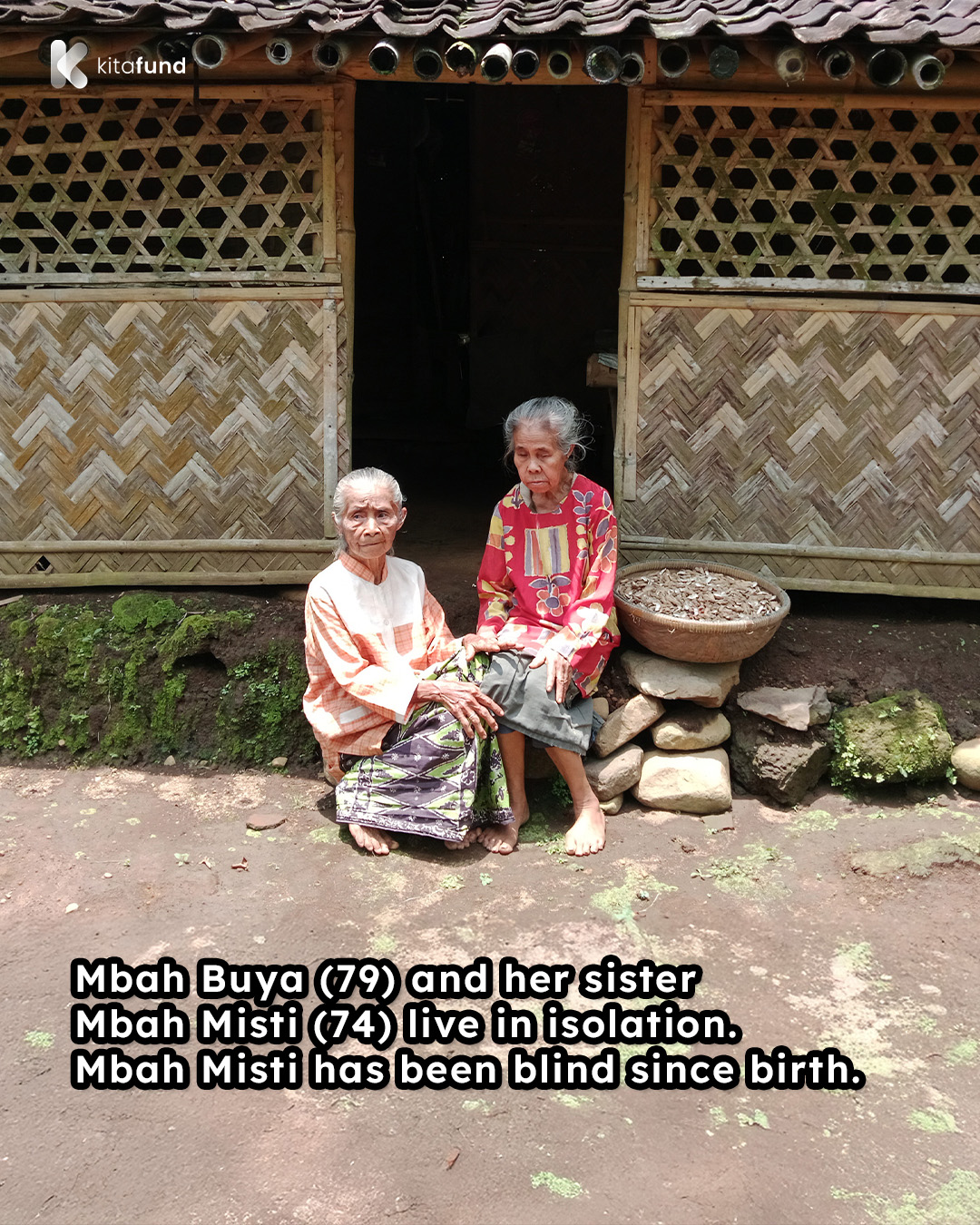 Living in isolation atop a steep hill, 79-year-old Mbah Buya and her blind younger sister, 74-year-old Mbah Misti, survive without any assistance from others. Since birth, Mbah Misti has been visually impaired and fully dependent on Mbah Buya for her daily needs—eating, bathing, and even fetching water from below the hill.