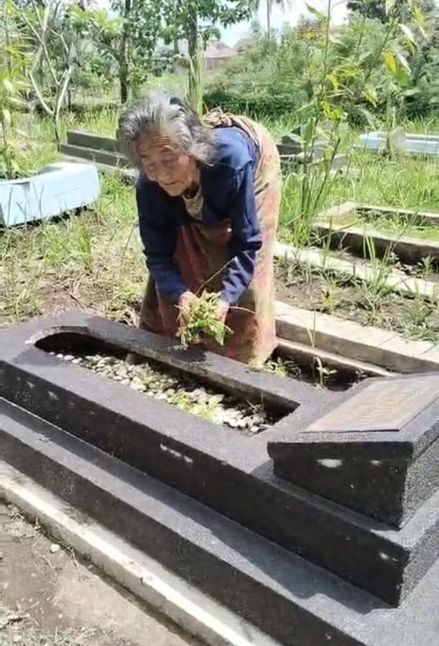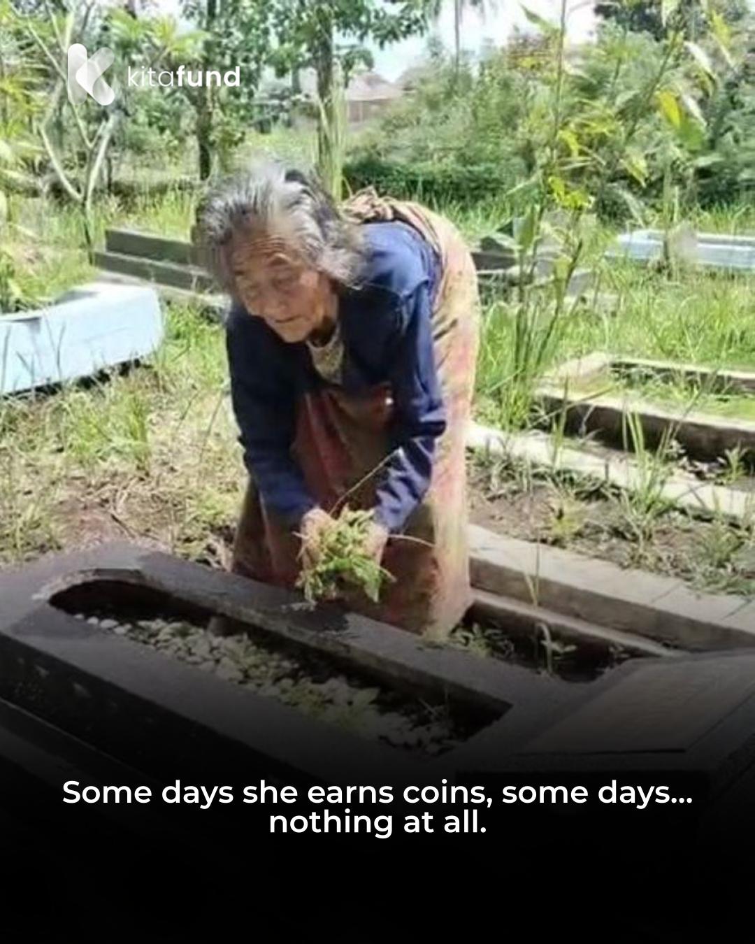 Every day, this frail 95-year-old woman walks slowly and carefully to a local cemetery, where she works as a gravekeeper. Her back is hunched, her steps are unsteady, and her hands tremble, but she continues to sweep and care for the graves out of respect for the departed.