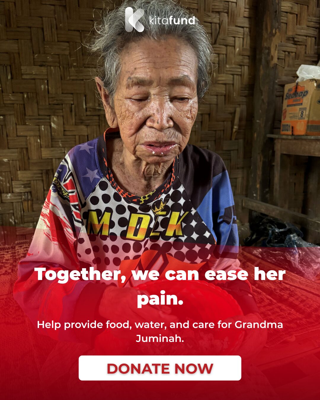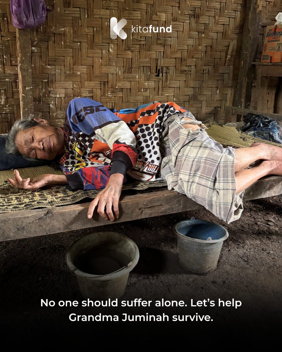 This is Grandma Juminah, a 79-year-old woman who is blind and paralyzed. She has lived alone ever since her husband passed away five years ago from an unknown illness—he never had the chance to seek medical treatment.