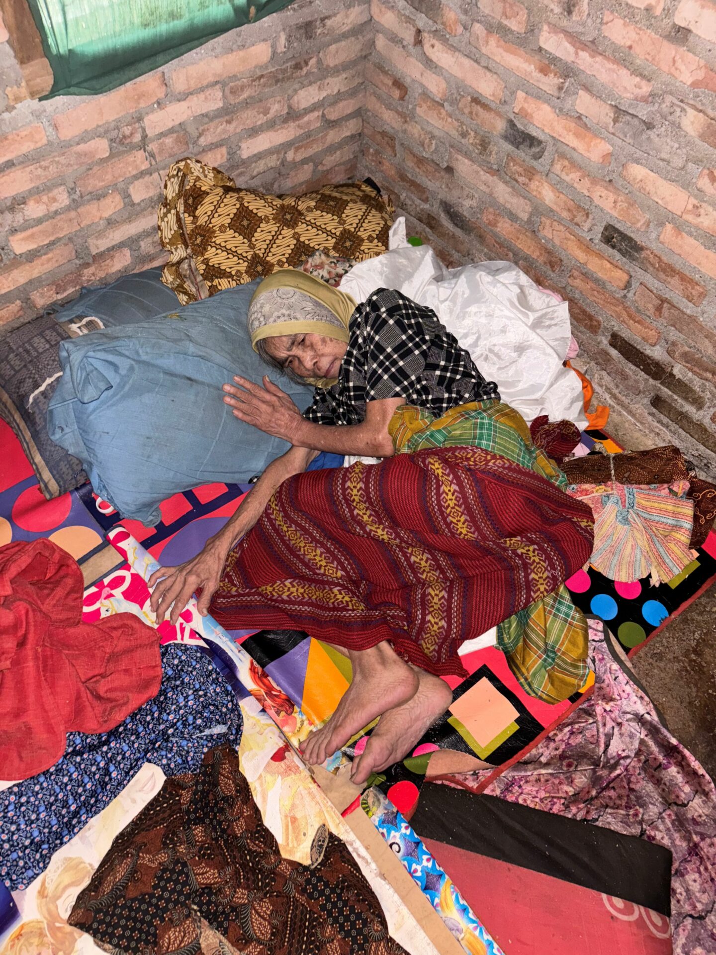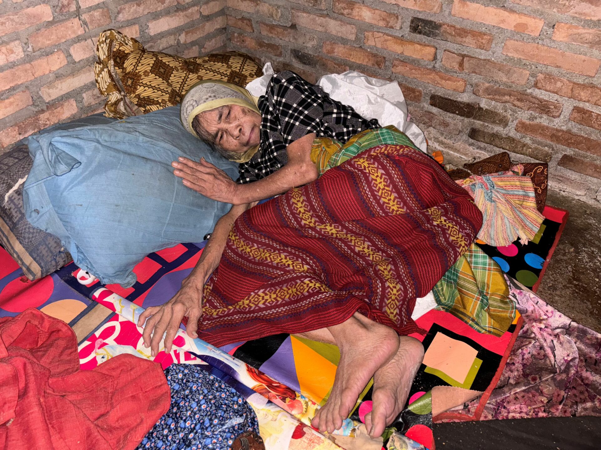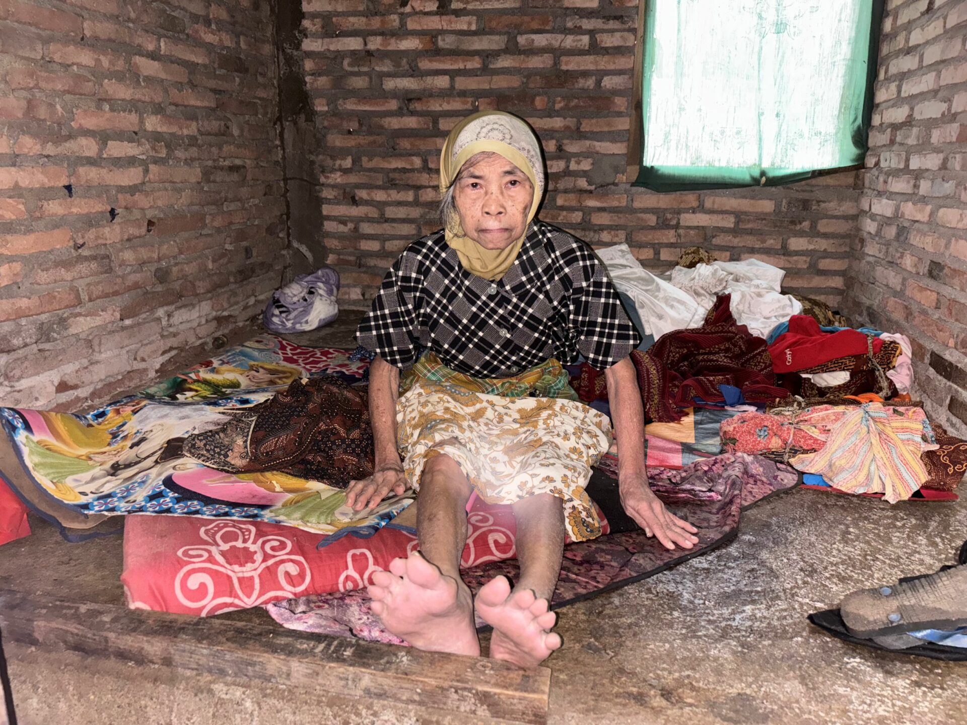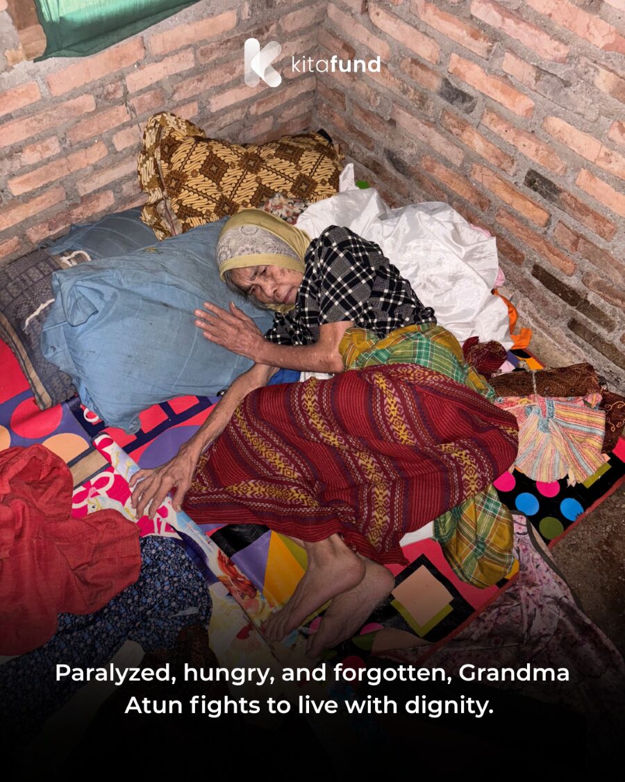 For the past two years, 73-year-old Grandma Atun has been lying weak inside her dilapidated, damp home. She became paralyzed after a fall but has no money for treatment.