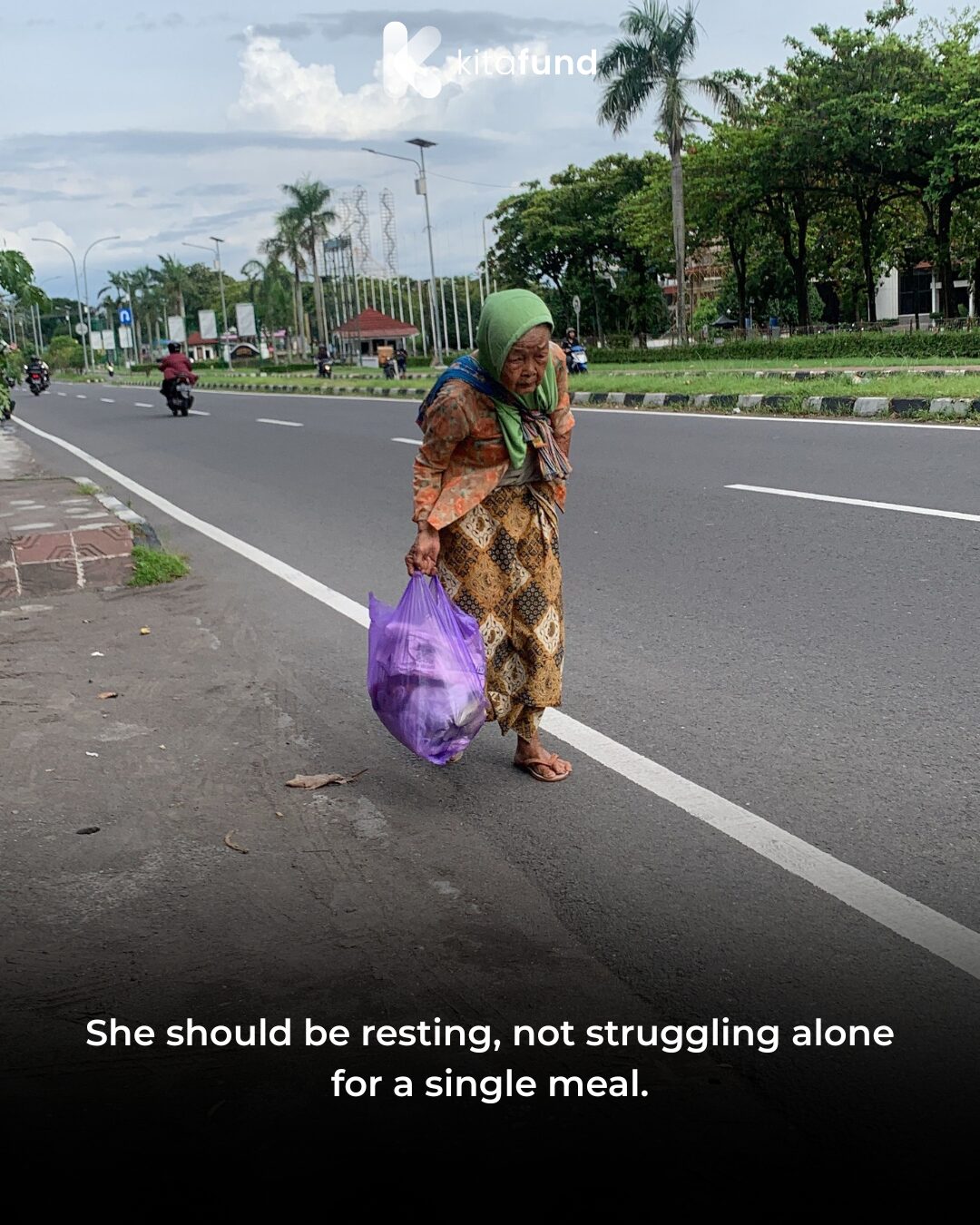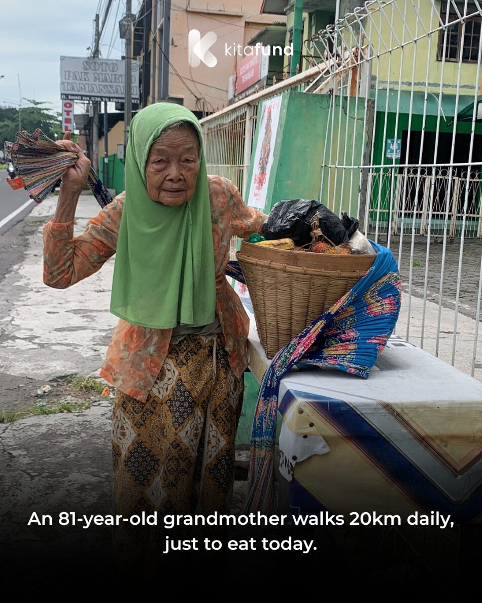 At an age when she should be resting, Mbah is forced to work every single day just to afford a meal. She walks nearly 20 kilometers daily, carrying vegetables and fruits to sell at the market—no vehicle, no assistance.