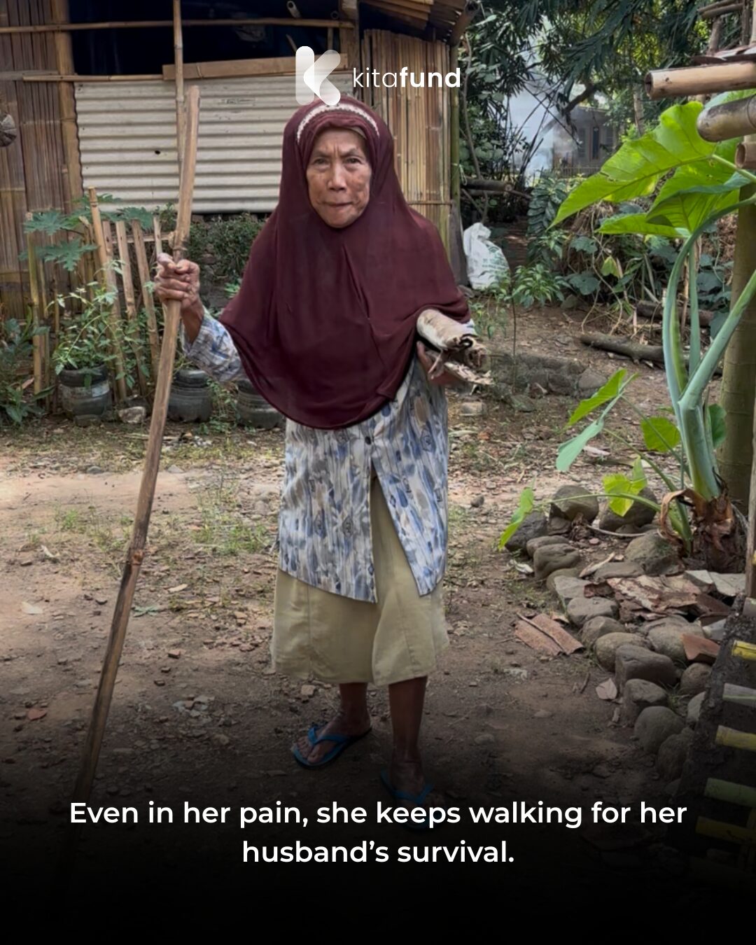 “My husband is sick with cancer… we need money for his treatment,” said Grandma Parinah (72), an elderly woman who walks from house to house selling bundles of firewood she gathers from the forest.