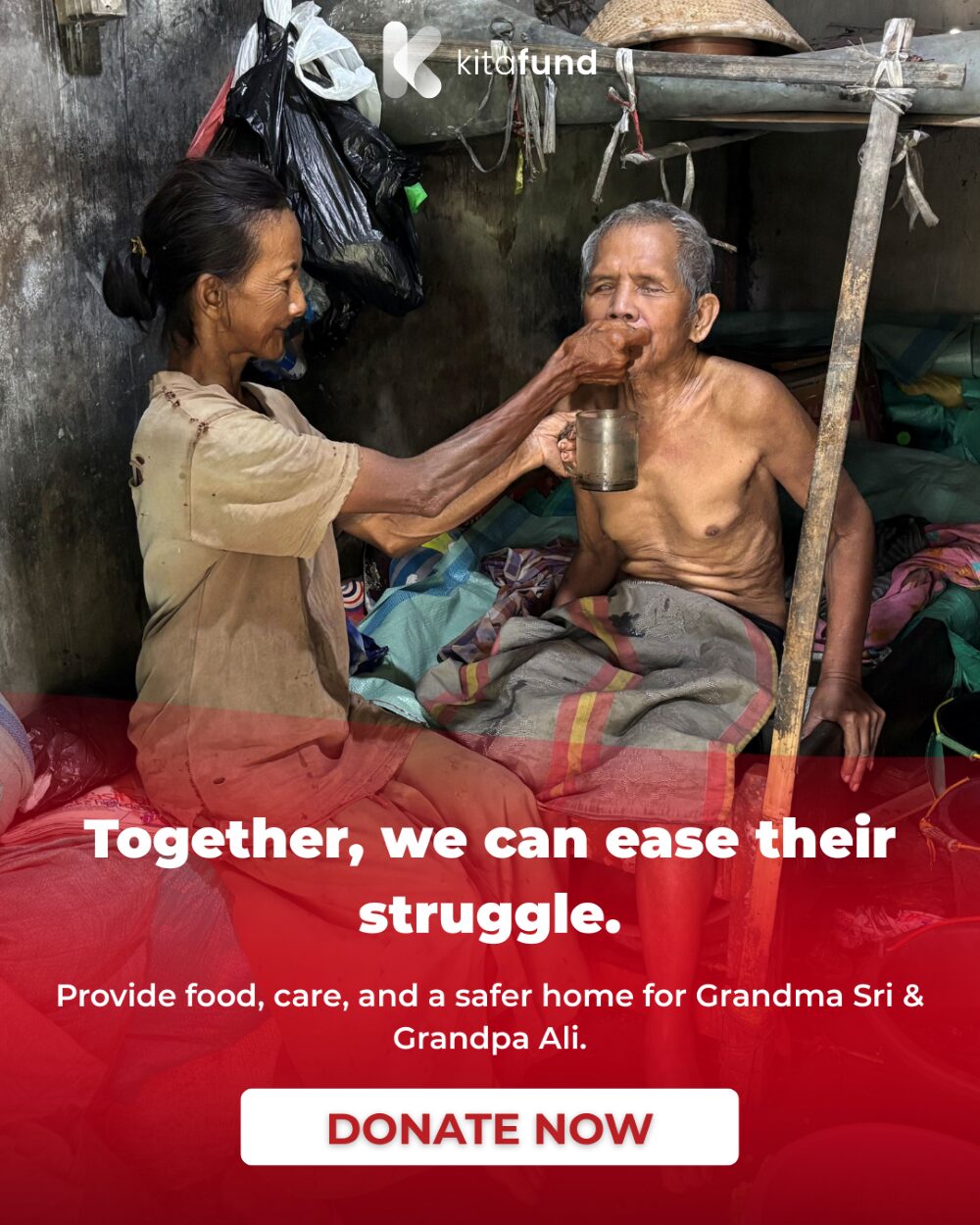 #KindSouls, please help Grandma Sri and Grandpa Ali survive by donating today. Every contribution brings hope and relief to their lives.