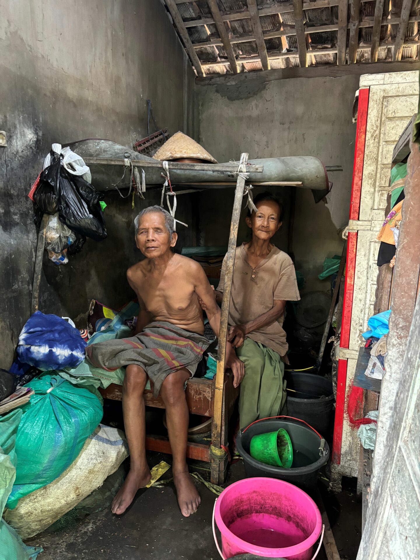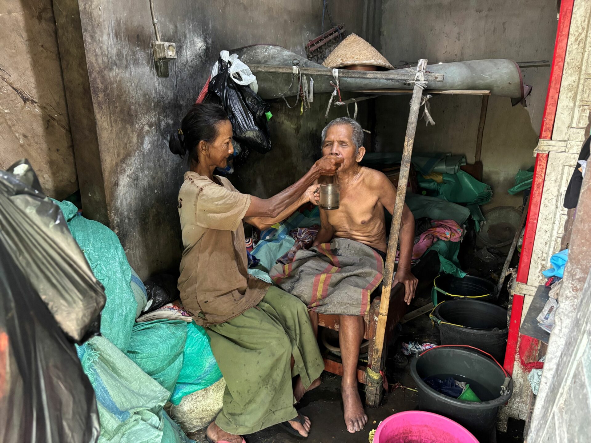 Grandma Sri, 60, and her husband, Grandpa Ali, 66, are struggling to survive under extremely difficult conditions. Grandpa Ali has been blind since birth and became paralyzed five years ago after a fall while working as a traveling massage therapist. Since then, he has been completely dependent on Grandma Sri for daily care.