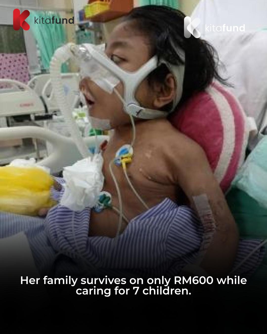 The family survives on just RM600 monthly assistance. That is all to support 7 children, including Ainul who needs special care, medical supplies, and equipment.