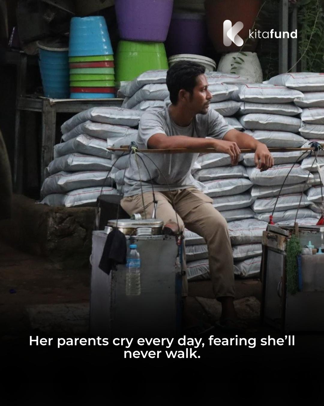 While waiting for Dara to reach 3 kg—the minimum weight needed for the operation—Mrs. Yanti’s husband tirelessly pushes his cart around, selling meatballs on the street. But daily earnings are inconsistent and far from enough to cover the surgery costs.