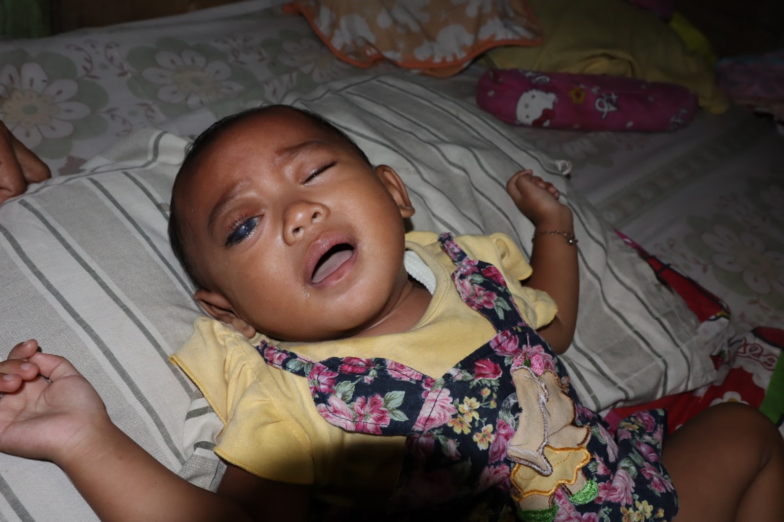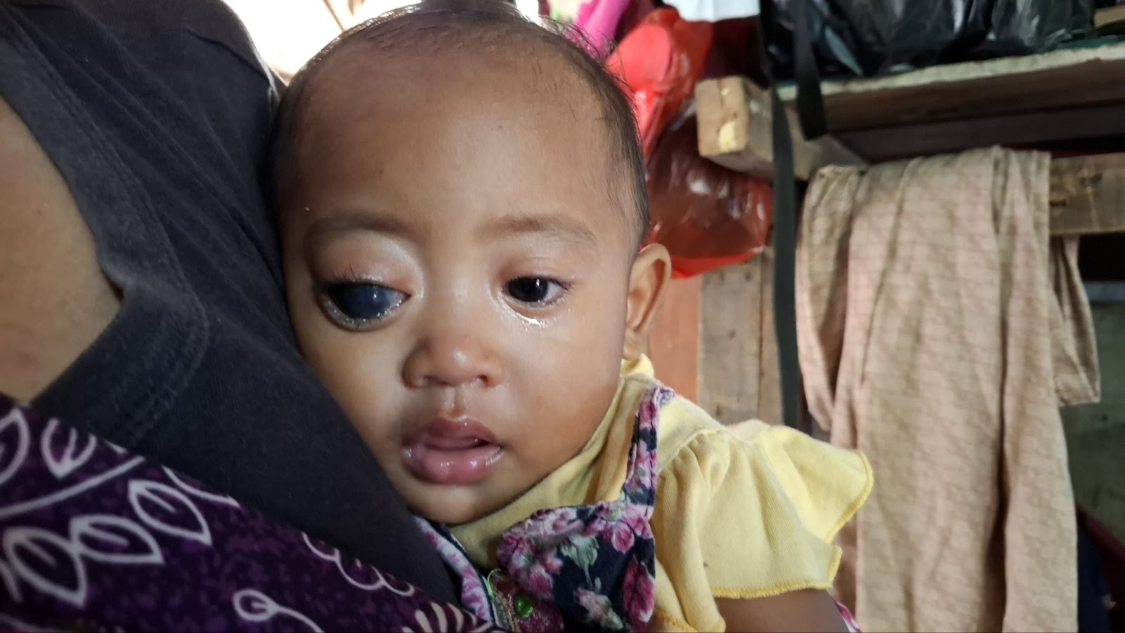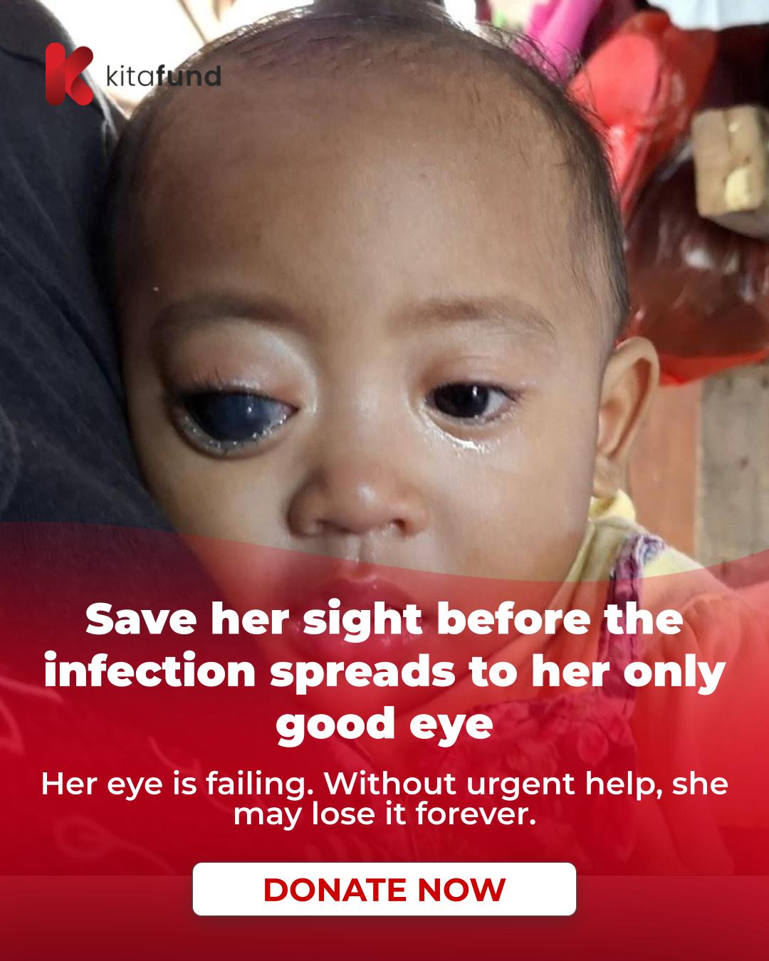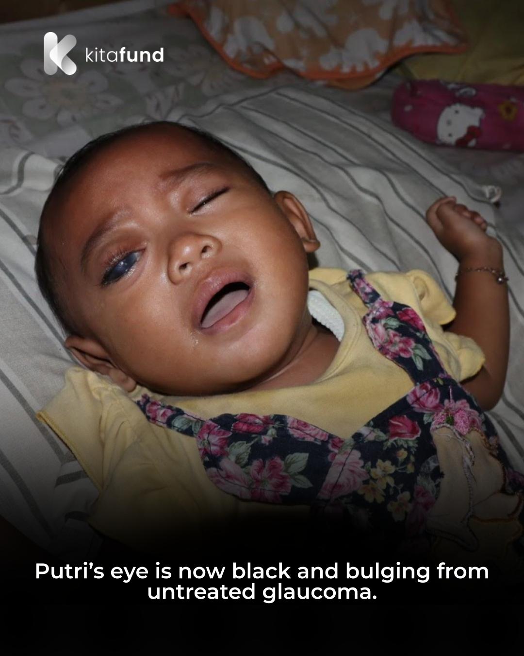 When Putri’s right eye turned red at just 5 months old, her parents never imagined it would get this bad. Her condition worsened, and now the entire eyeball has turned black and is bulging outward.