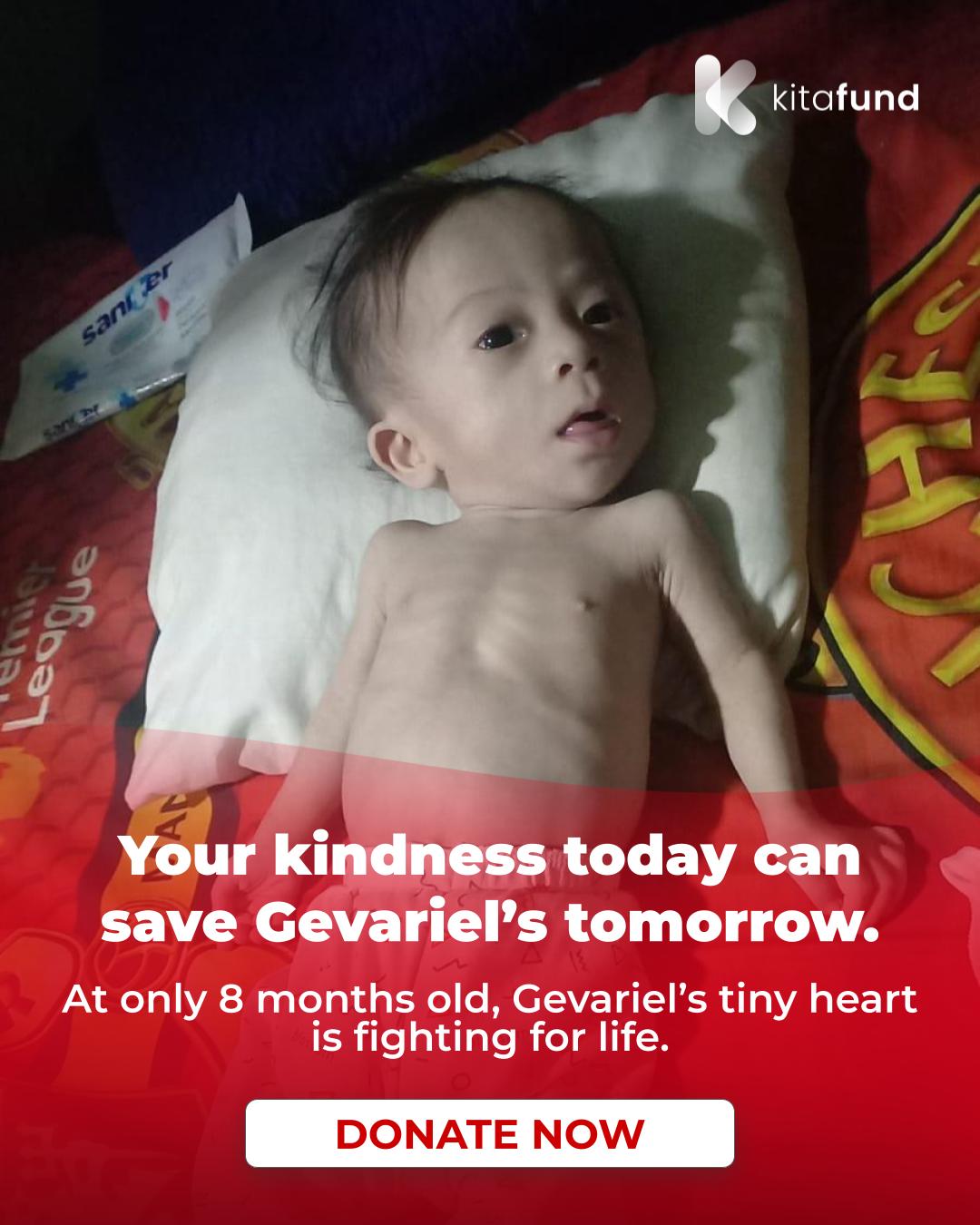 Friends, every single day is a gamble with Gevariel’s life. He urgently needs heart surgery and nutritional recovery. But the costs are far beyond what his family can afford. If you are reading this, please help Gevariel survive. Even a little from us means the world to his life.