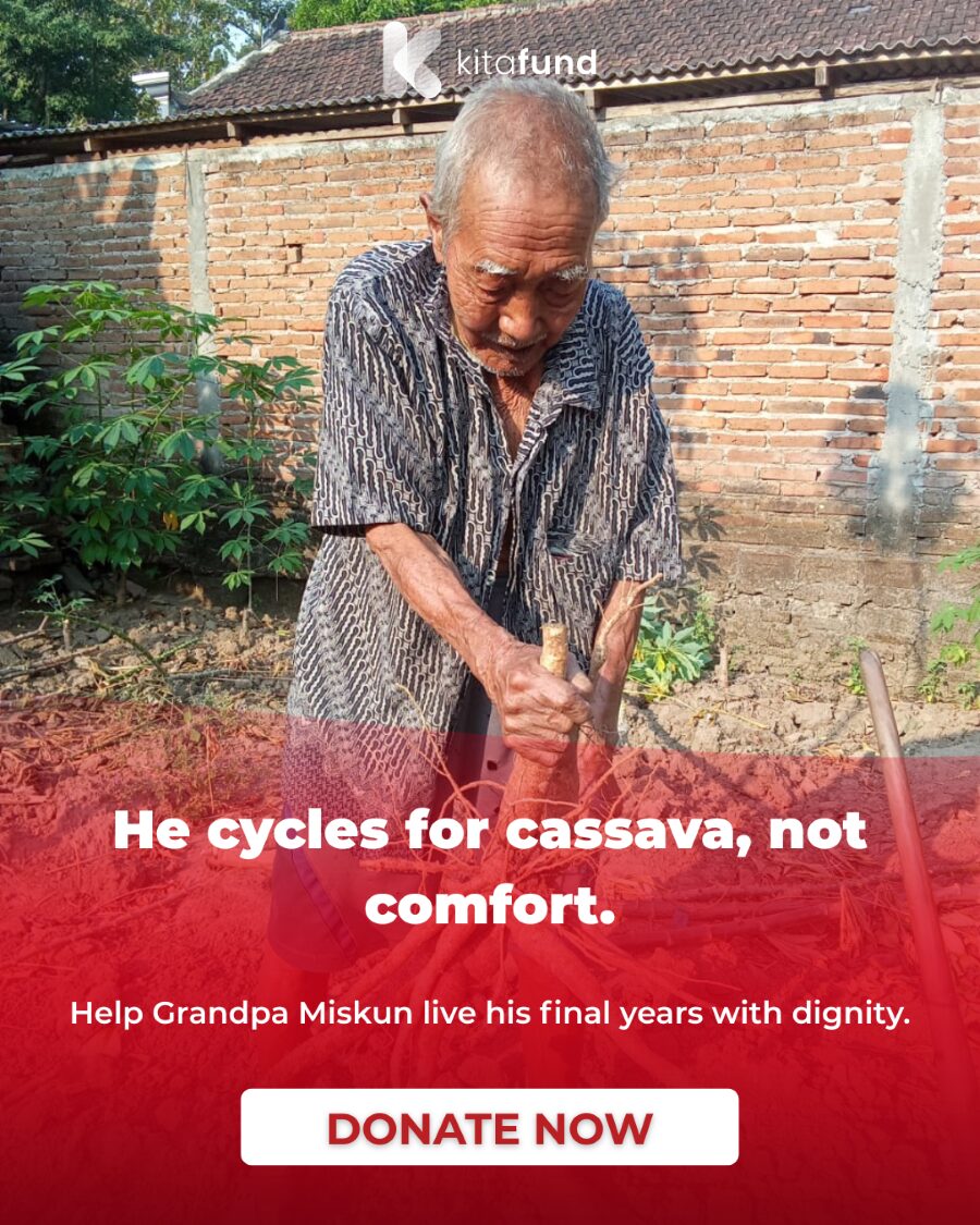 This is the story of Grandpa Miskun (84), an elderly man who still has to struggle in his old age. Every day, with his weakening body and recurring gout, he cycles around the village selling cassava harvested from his own small garden.