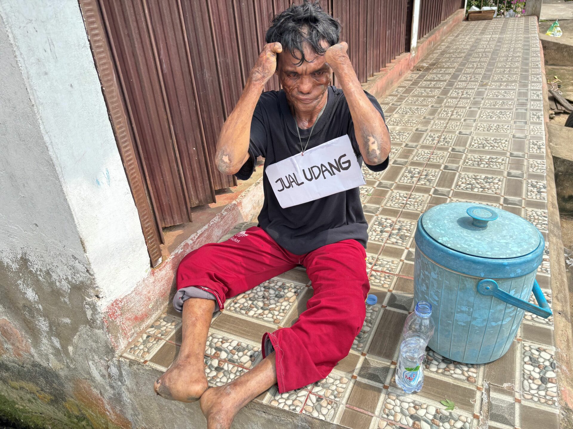 Amid crashing waves and the relentless storms of life, 46-year-old Mr. Jali embodies the true meaning of strength and a son’s devotion. Despite living with physical disabilities in both his hands and legs, he never gives up. Every day, he travels 10 kilometers to sell his modest catch — clams, snails, fish, and shrimp — just to earn enough to buy food for his beloved mother at home.