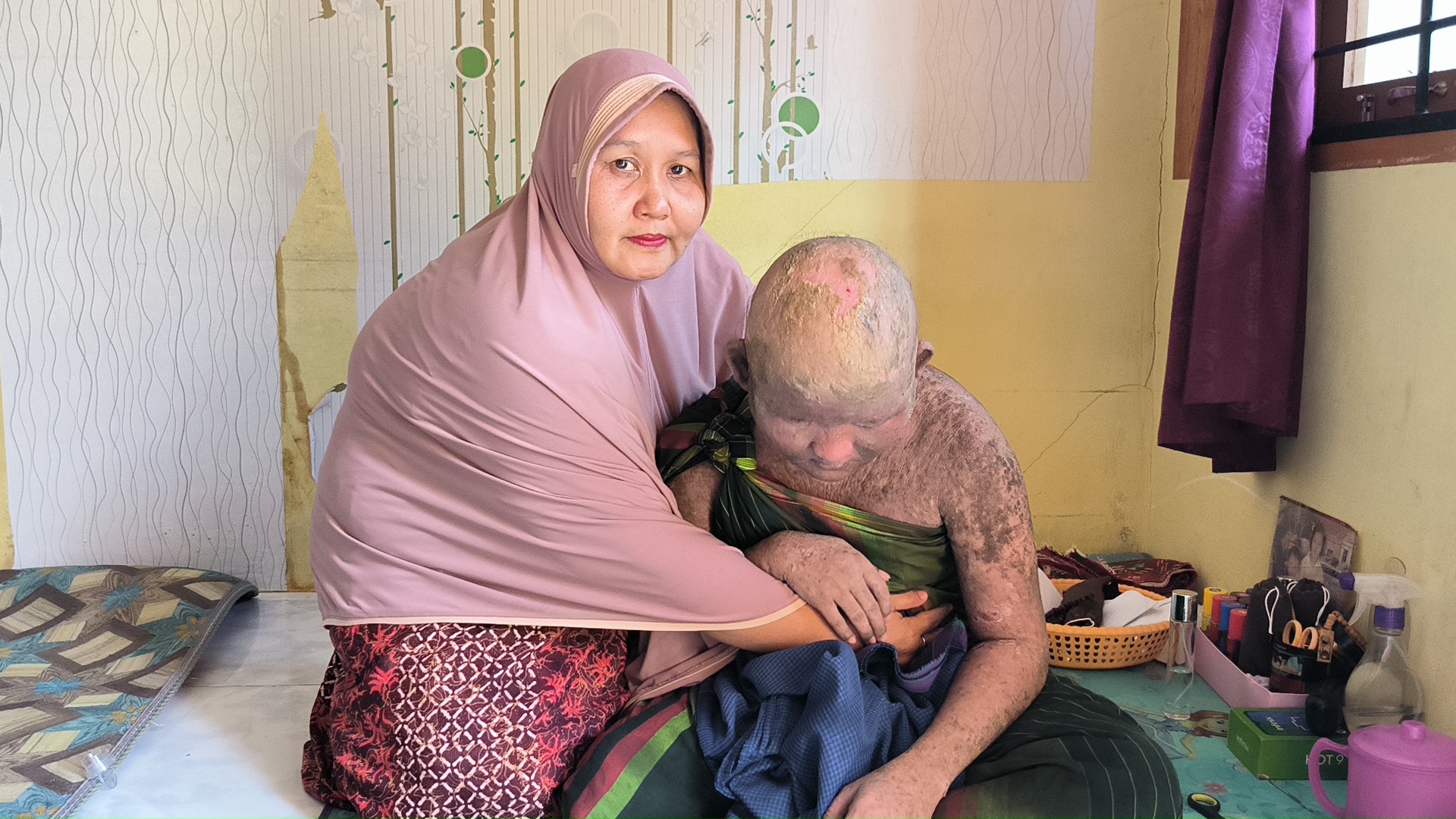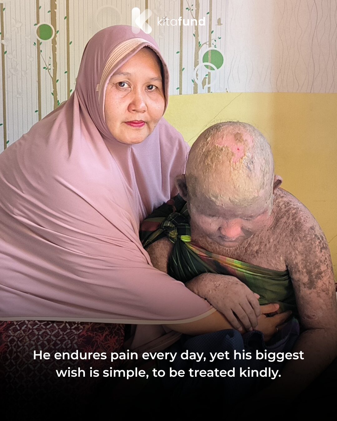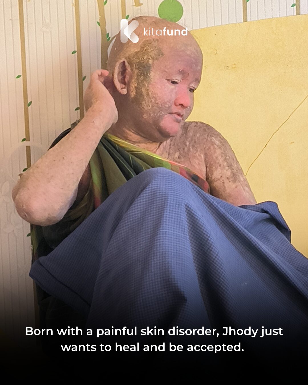 Since birth, Jhody has suffered from a rare skin disorder that makes his entire body dry, scaly, and often feel like it’s burning. Almost every day, he endures unbearable itching, heat, and pain all over his body. Because of his condition, people around him often treat him as strange — mocking, insulting, and bullying him.