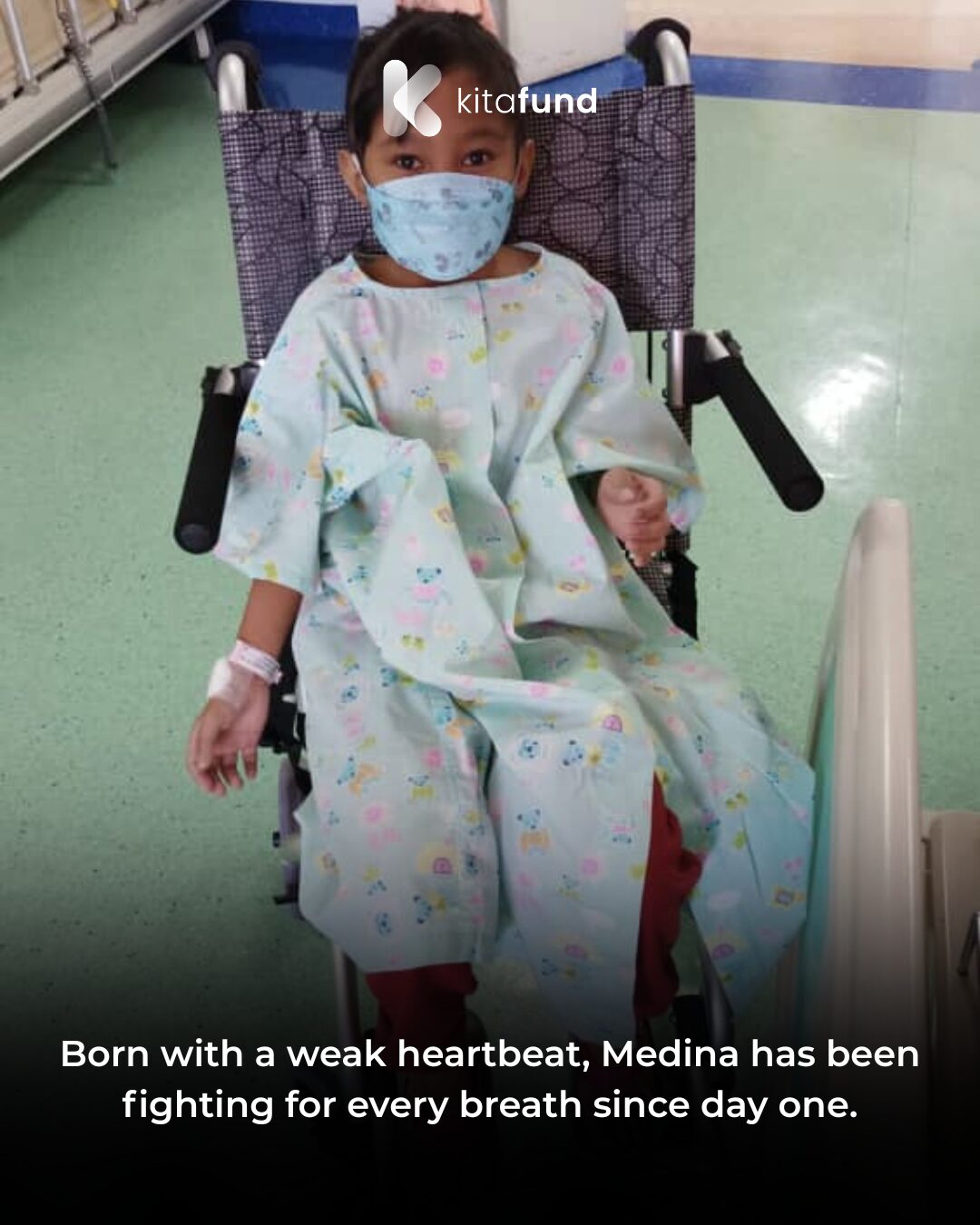 Even before she was born, doctors already detected something unusual in the tiny heart of baby Medina Hanania binti Mohd Hamizi. Her heartbeat was weak — not like her twin’s. When she finally came into the world, Medina had to rely on a breathing machine; her body was pale, bluish, and frail.