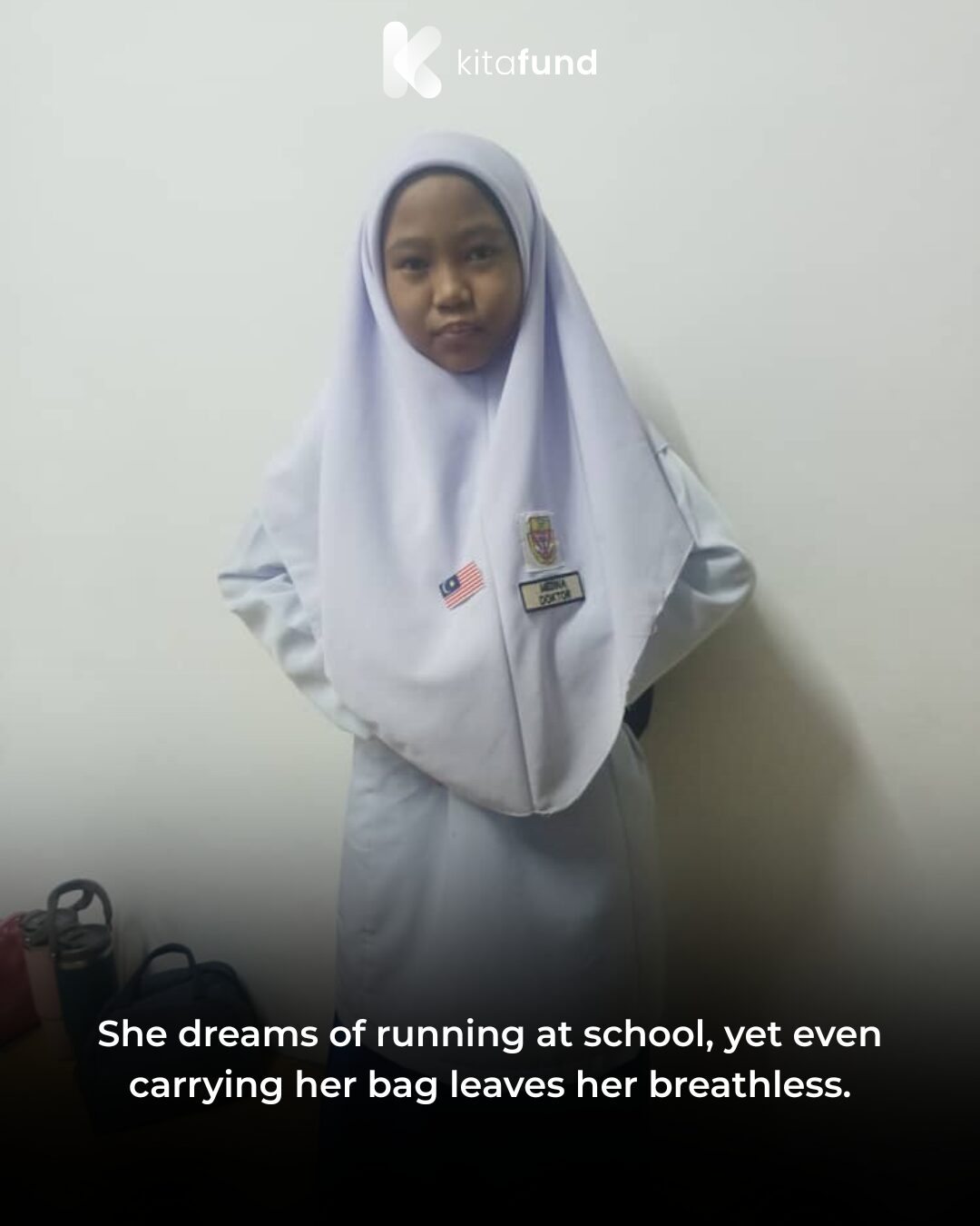 Because of this, Medina can’t live like other kids her age. Carrying her school bag feels too heavy. She can only watch her friends play during sports activities, wishing she could join them.
