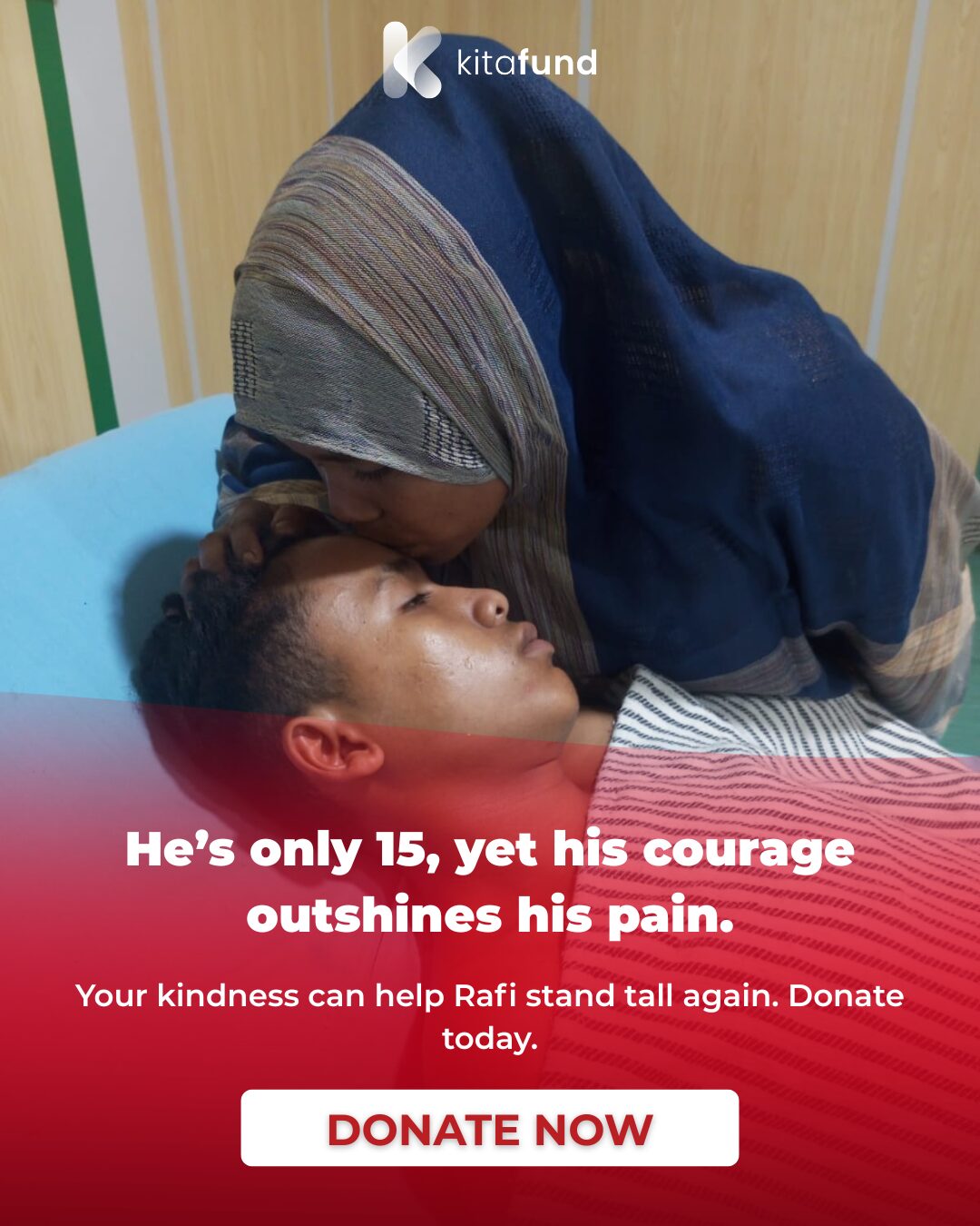 Rafi Simbolon’s life changed in an instant. On his way home from work, the teenager was struck by a truck, dragged beneath it, and crushed. His left leg suffered a deep open wound, and his right leg was so badly damaged that it had to be amputated. Through the agony, Rafi stayed conscious, crying out for help and thinking only one thing: “I have to stay alive for my mom.”