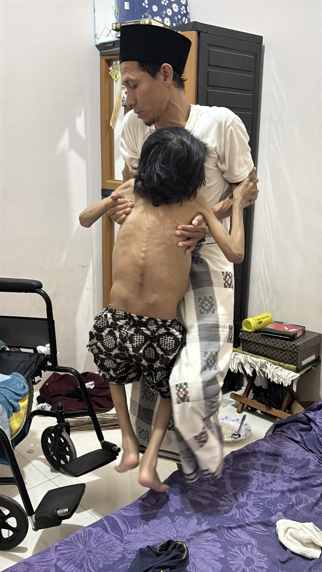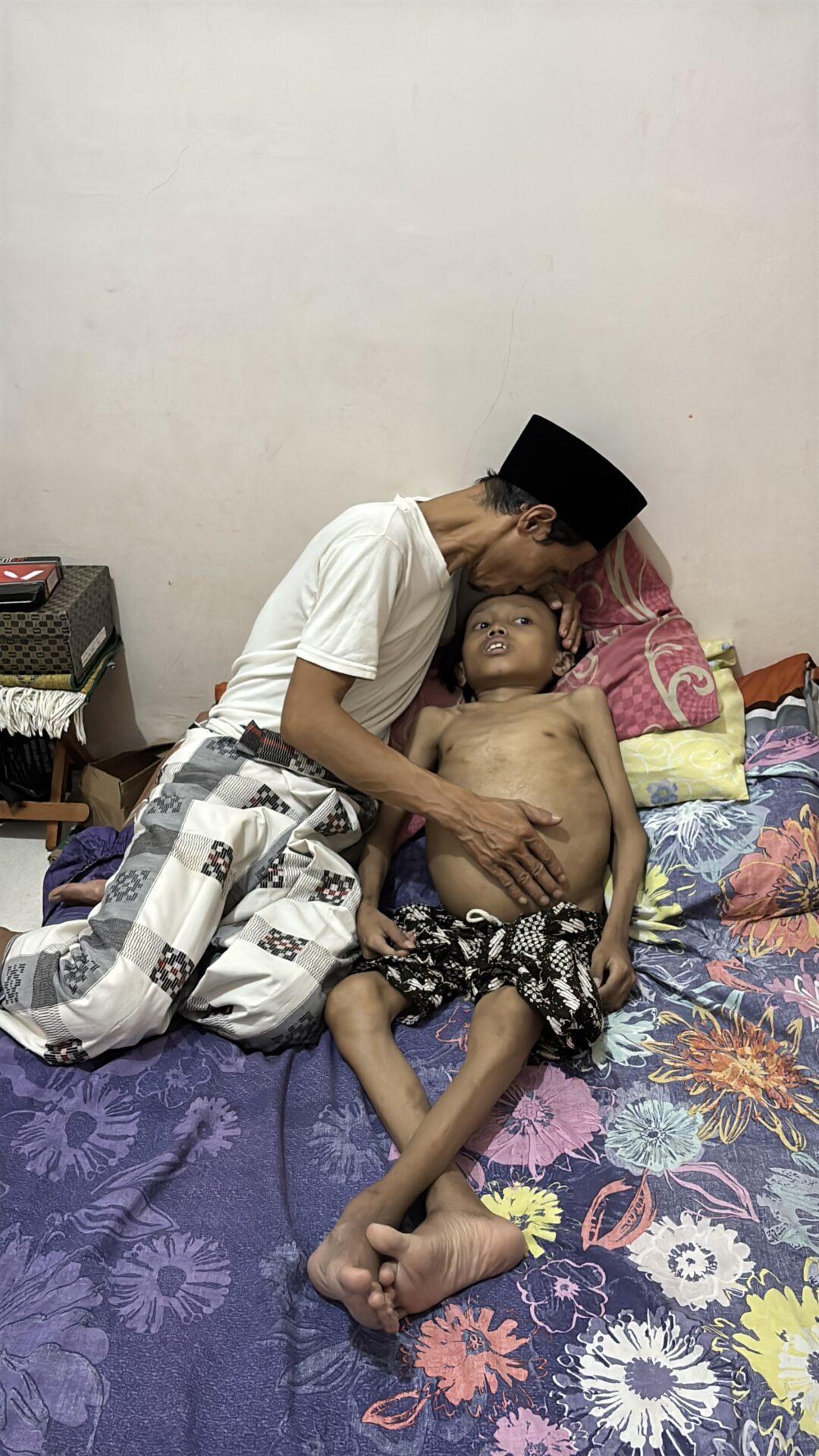 Pak Deden, who used to work solely as a Quran teacher, now struggles to earn extra income by selling fried snacks around the neighborhood. Even though he makes about $3 a day, it’s still not enough to cover Yuki’s biweekly transfusions.