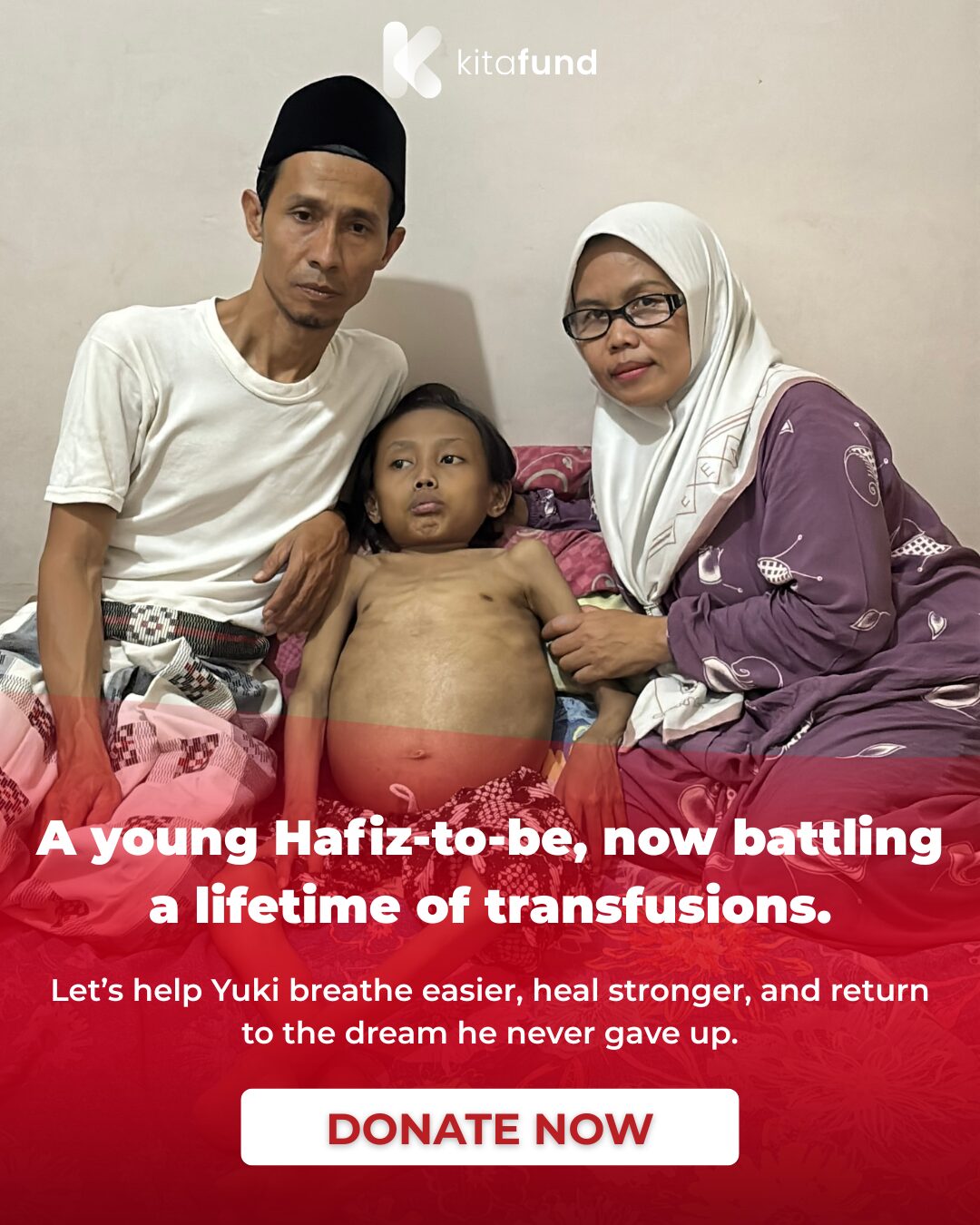 Ever since Yuki first learned to read the Quran, he always dreamed of becoming a Hafiz and one day replacing his father as the neighborhood Quran teacher. But that dream was suddenly cut short when he was diagnosed with a rare blood disorder — Thalassemia — which has been slowly destroying his body.