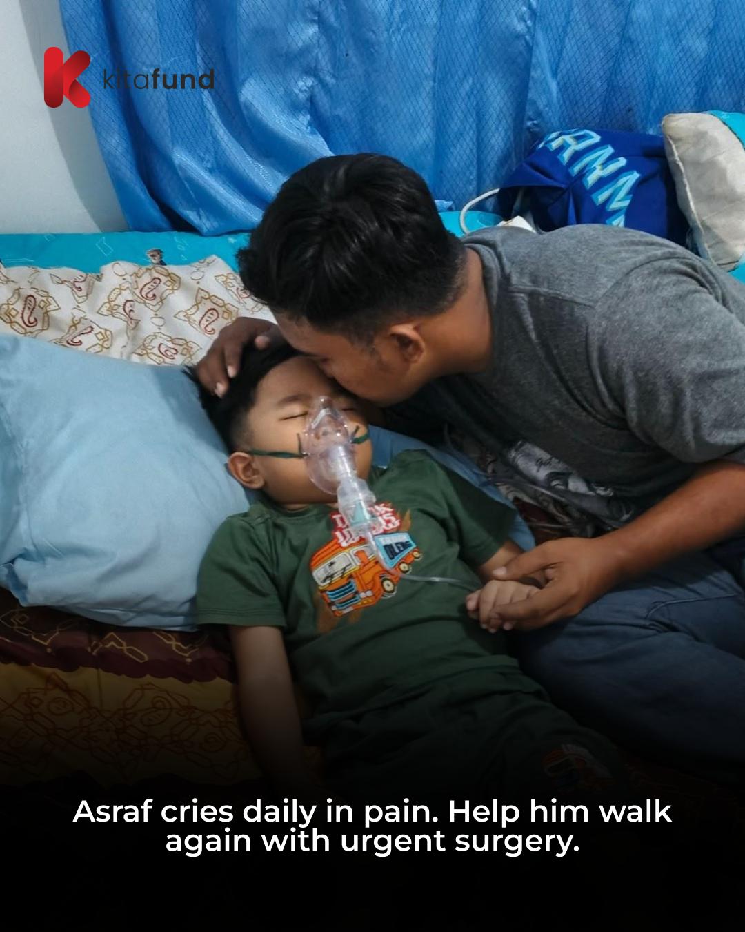 “My son was so excited to start preschool this year. But then tragedy struck—Asraf’s leg became severely swollen,” said Mr. Misgianto, Asraf’s father.