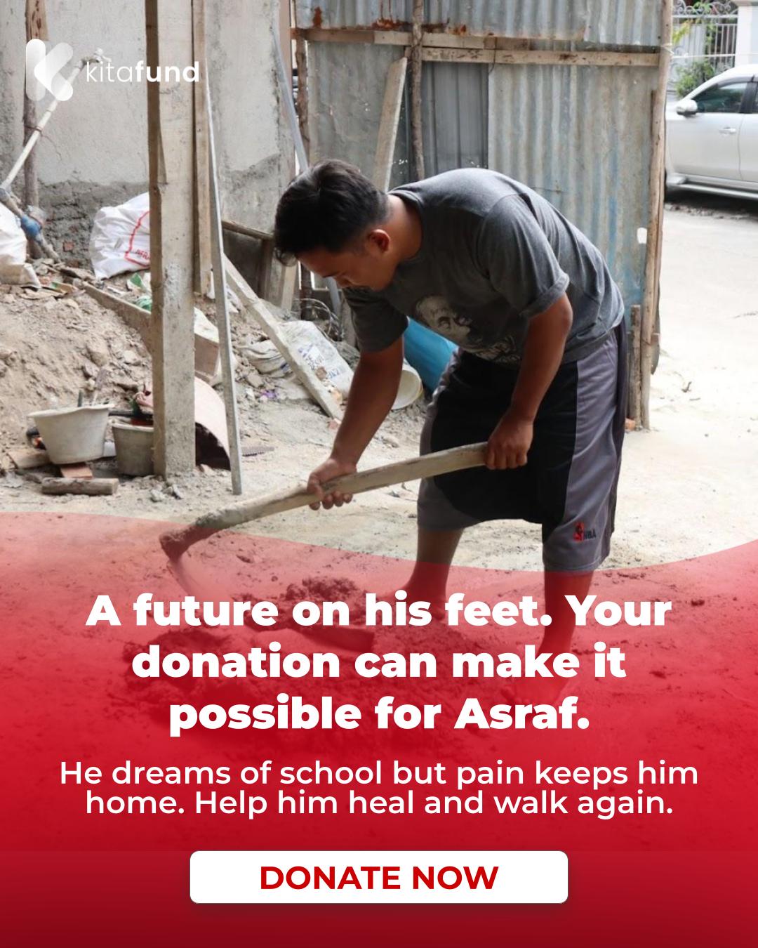 Dear friends, Asraf urgently needs your help so he can have surgery on his leg and hopefully walk again someday.
