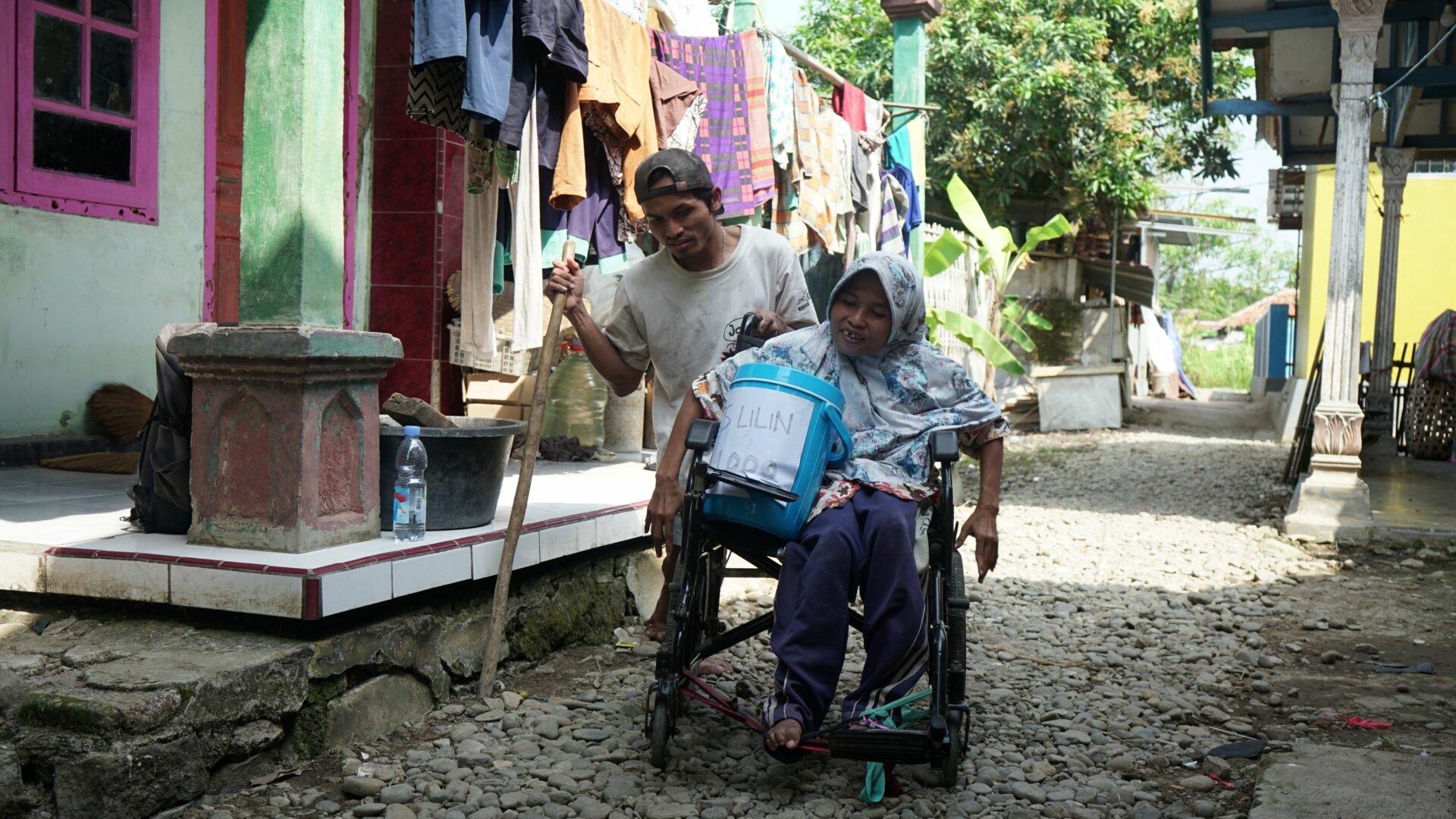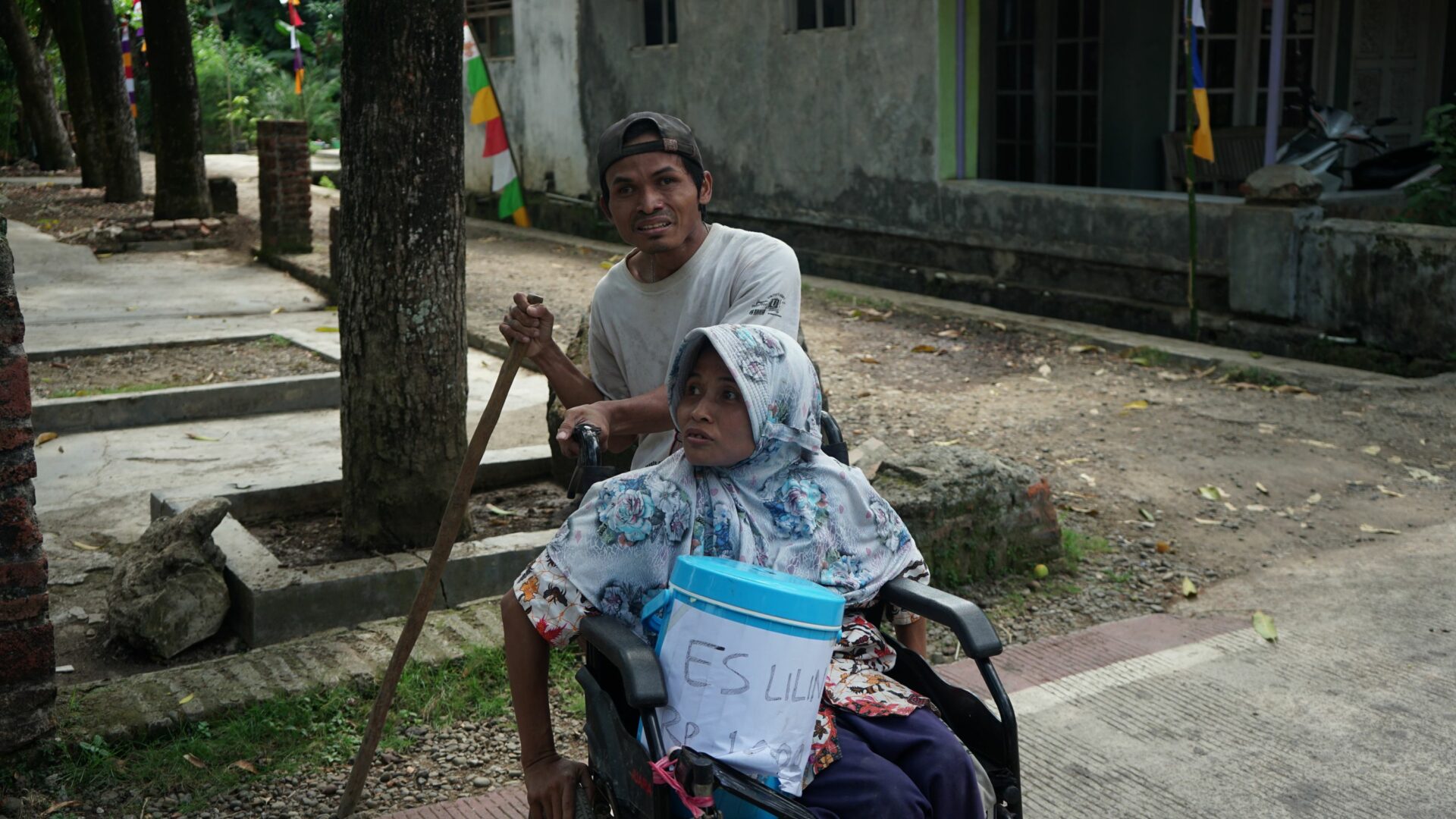 Now, at 33, Karjani lives with his sister, Satini (35), who is also disabled and relies on a wheelchair. The two support each other, surviving with almost nothing. Every day, Karjani pushes his sister’s wheelchair while selling ice pops on the street. With a cane in one hand, he struggles step by step, stopping every few minutes to rest. Sometimes he falls — but always gets back up.