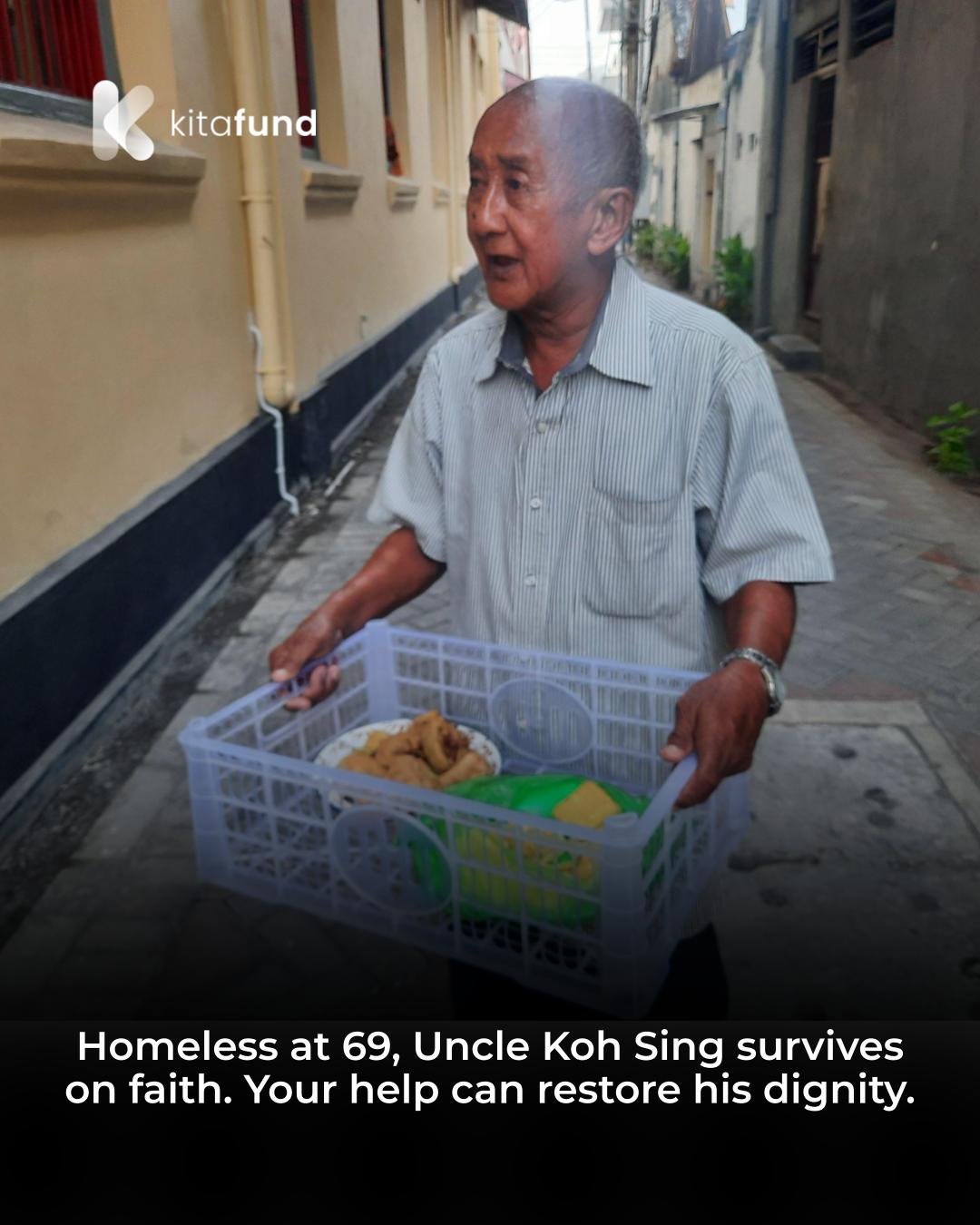Koh Sing is turning 69 this year. But at such an old age, he has no home to shelter him. Today, he lives in a small rented room — one that he often struggles to pay for.