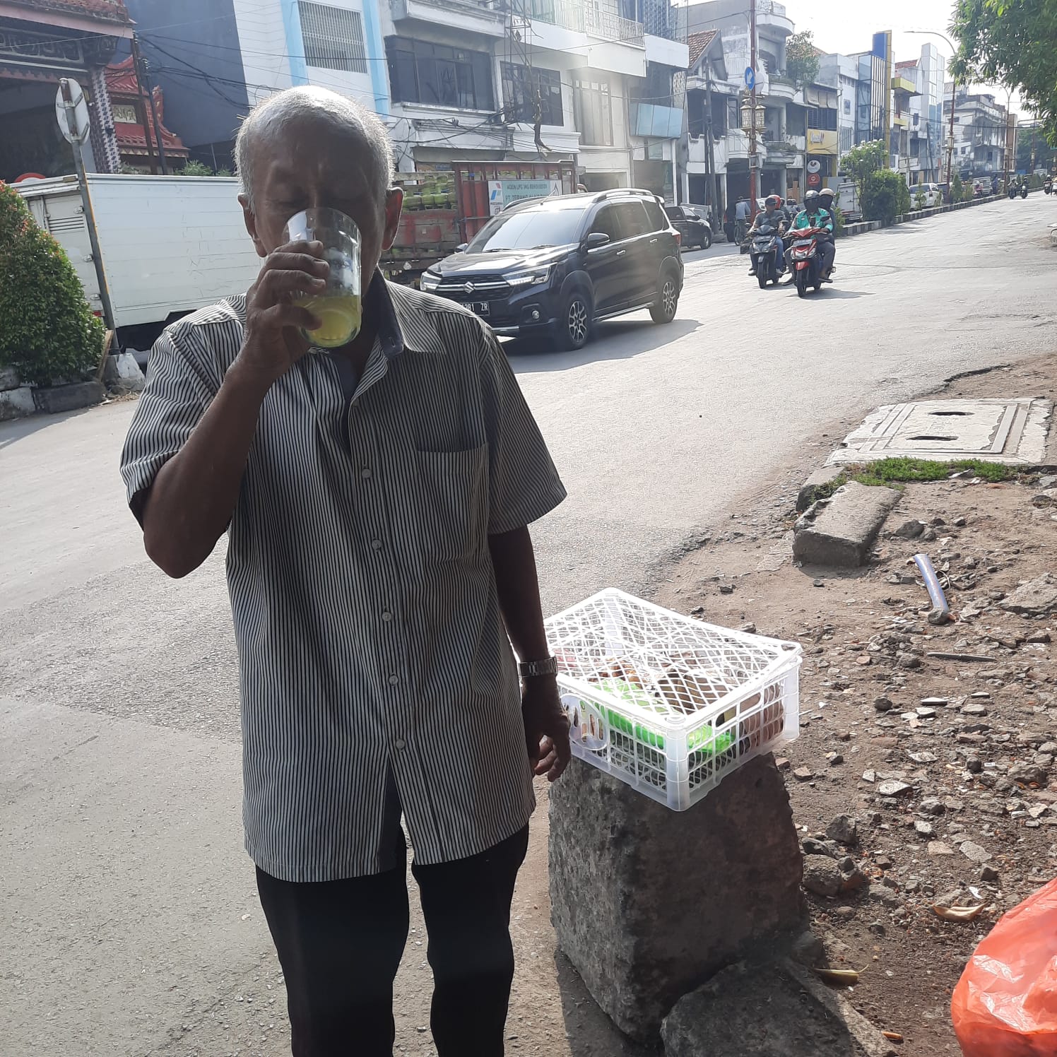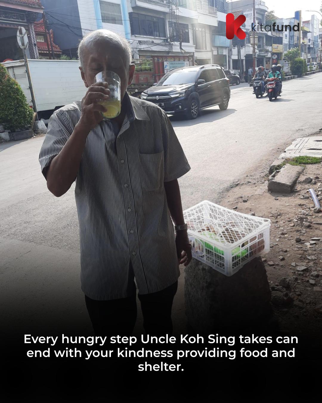 To survive, Koh Sing walks around Surabaya city, selling snacks he takes from an agent. Yet, many days, the income he earns is not even enough to cover his costs. He goes everywhere on foot, as he has no bicycle or vehicle at all.