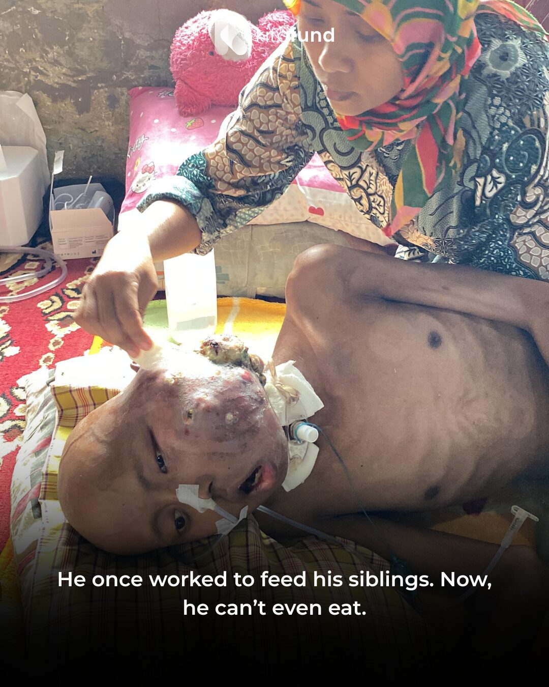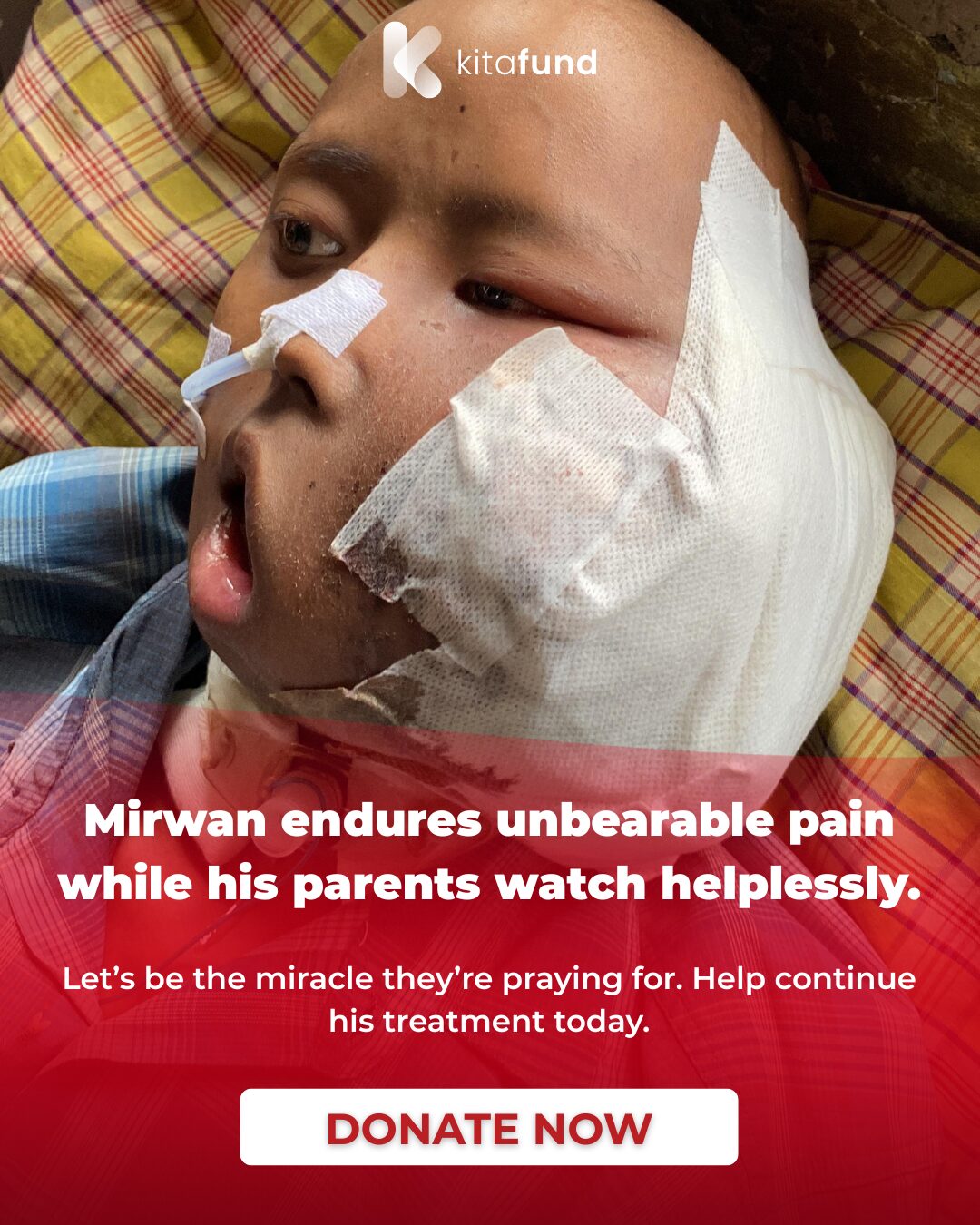 Mirwan can no longer scream. The malignant tumor has covered almost his entire face and mouth, making it hard for him to speak, eat, or even breathe. He used to be known as a cheerful and hardworking boy — even quitting school to help his father earn money so his six younger siblings wouldn’t go hungry. But now, his world has crumbled in an instant.