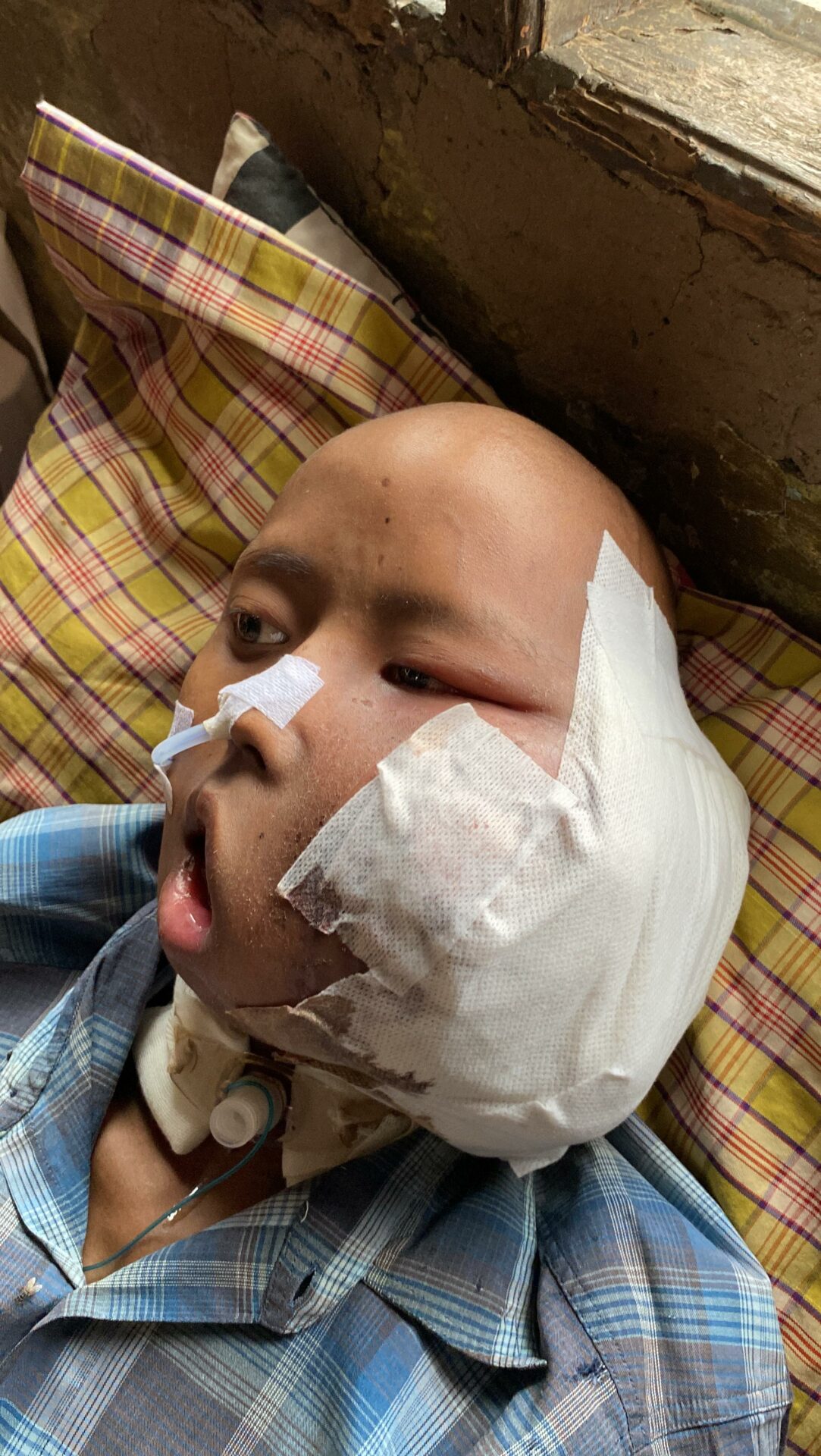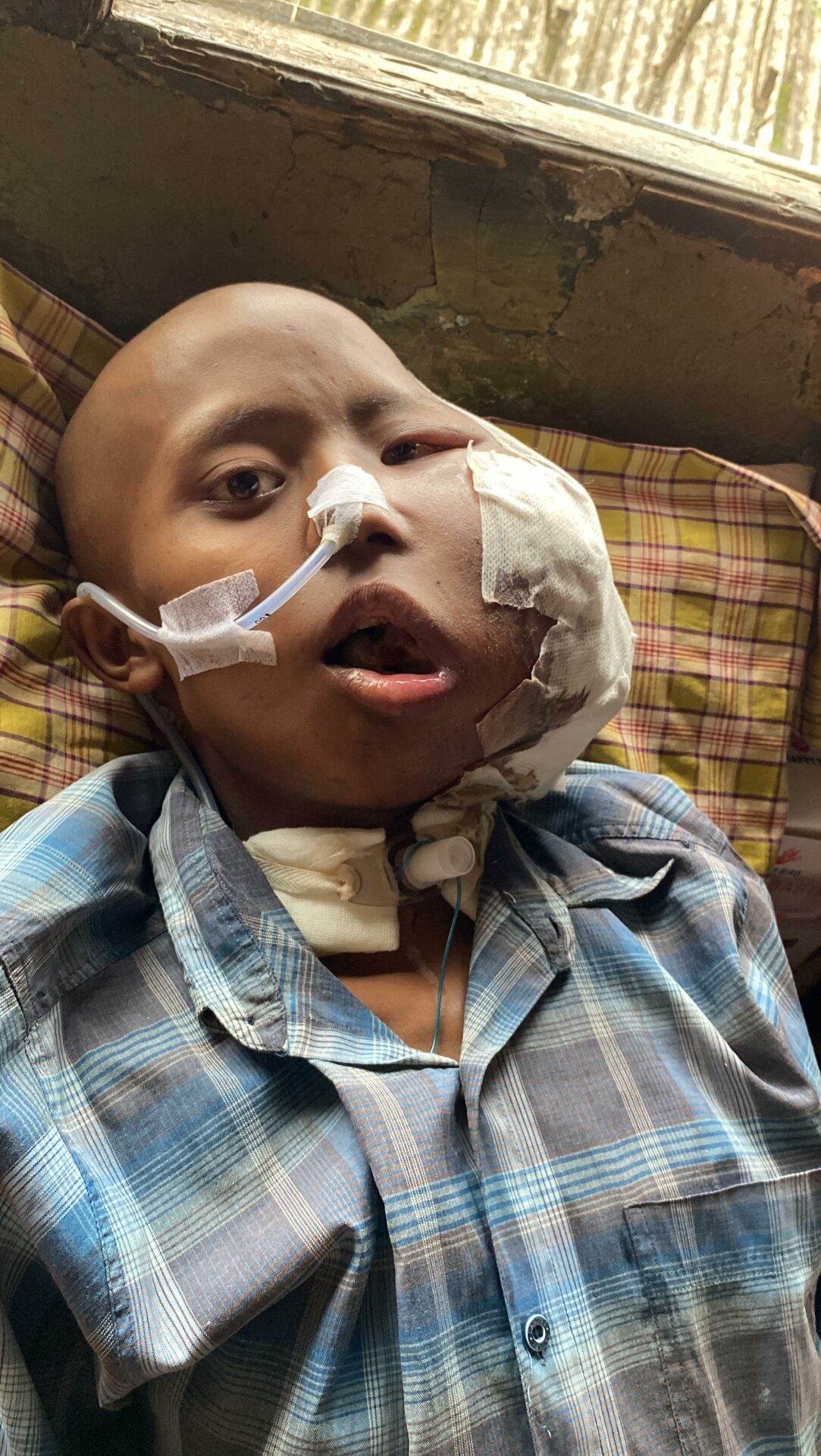 Doctors have advised 30 cycles of chemotherapy (1 cycle = 3–4 routine sessions) to stop the tumor from spreading to his vital organs. But until now, treatment hasn’t been able to continue. The family has sold everything they owned — there’s nothing left.