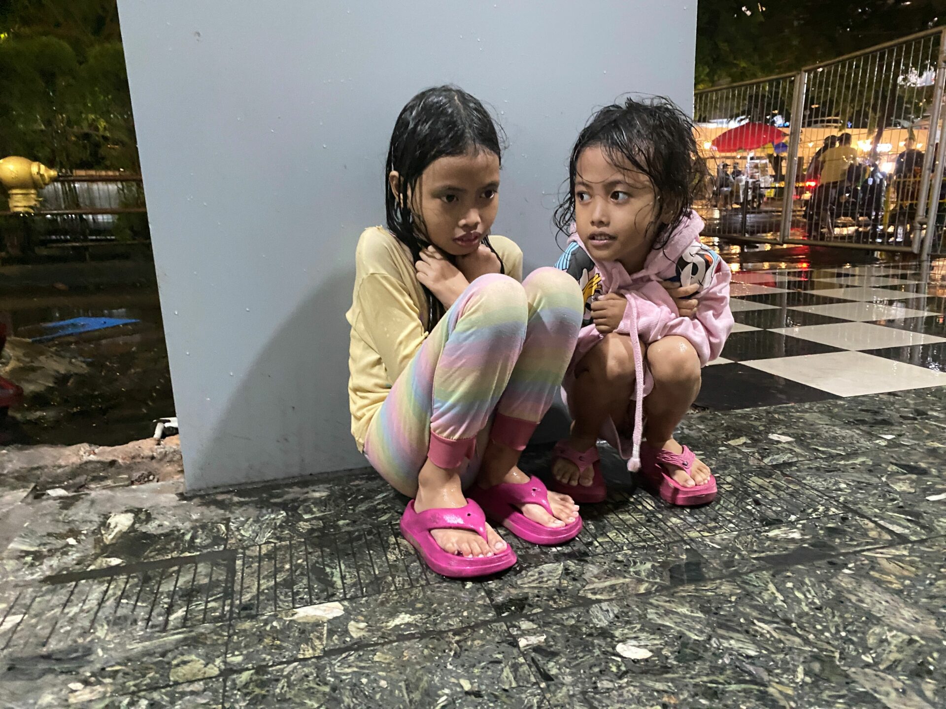 Their small hands wrinkle from the cold rainwater as they walk the streets.