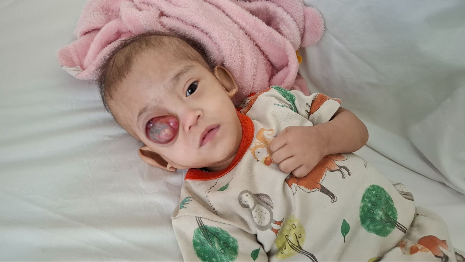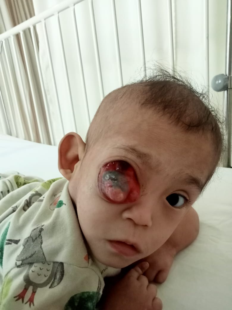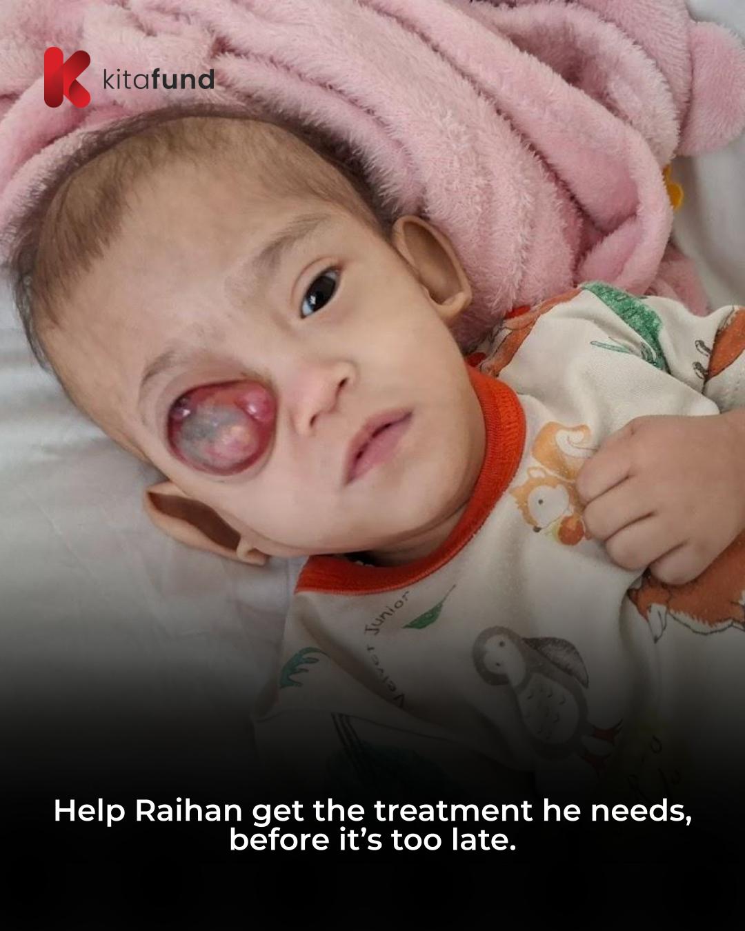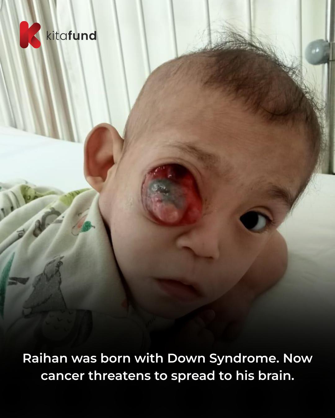 The only thing Raihan can do is cry—his eye is being ravaged by a deadly cancer, and he was born with Down Syndrome…