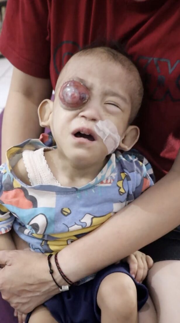 Raihan’s right eyeball is protruding far beyond the eyelid. It’s red, sometimes oozing pus or blood. Doctors later confirmed the lump was an aggressive cancer that could spread to his brain if not removed immediately.