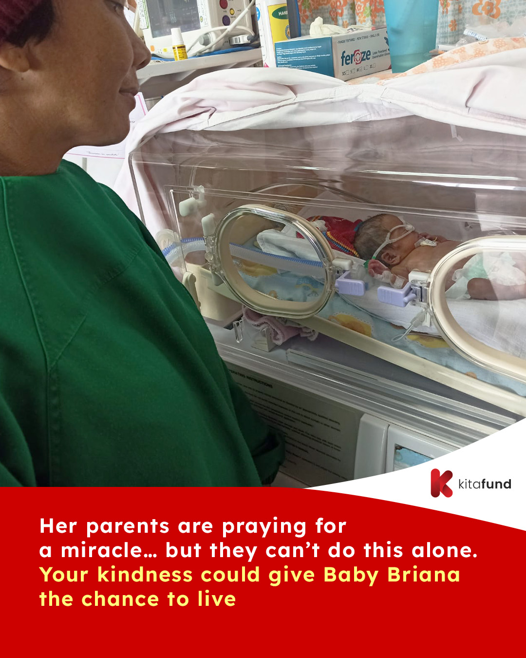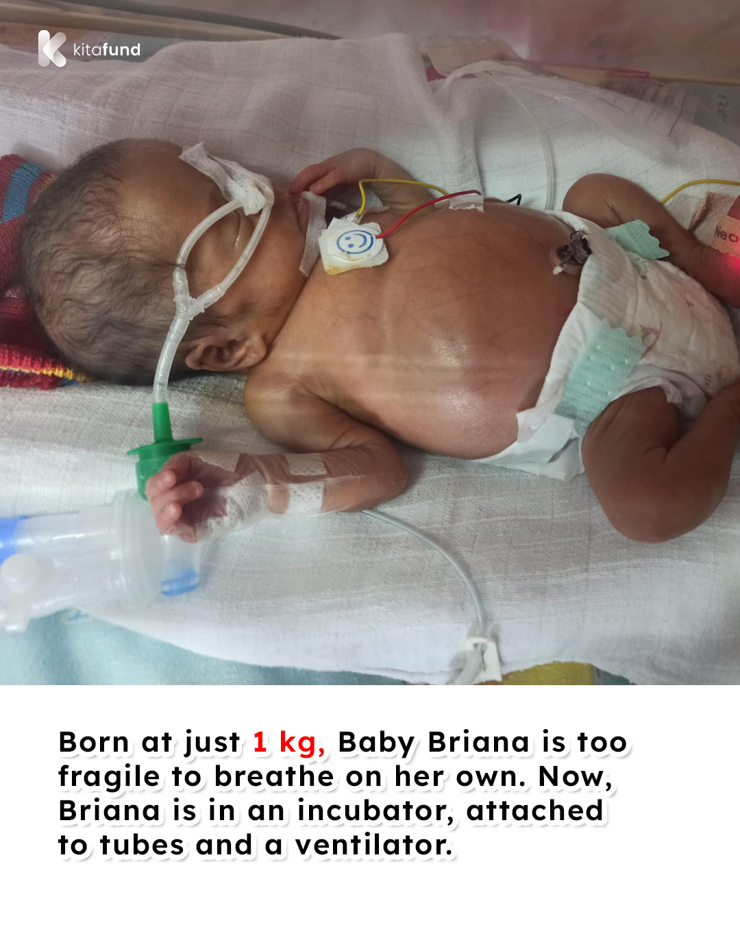 Born prematurely at just 7 months, Baby Briana entered the world weighing only 1 kg. Her tiny lungs are not fully developed, and she is now dependent on a ventilator in the NICU, fighting for every breath.