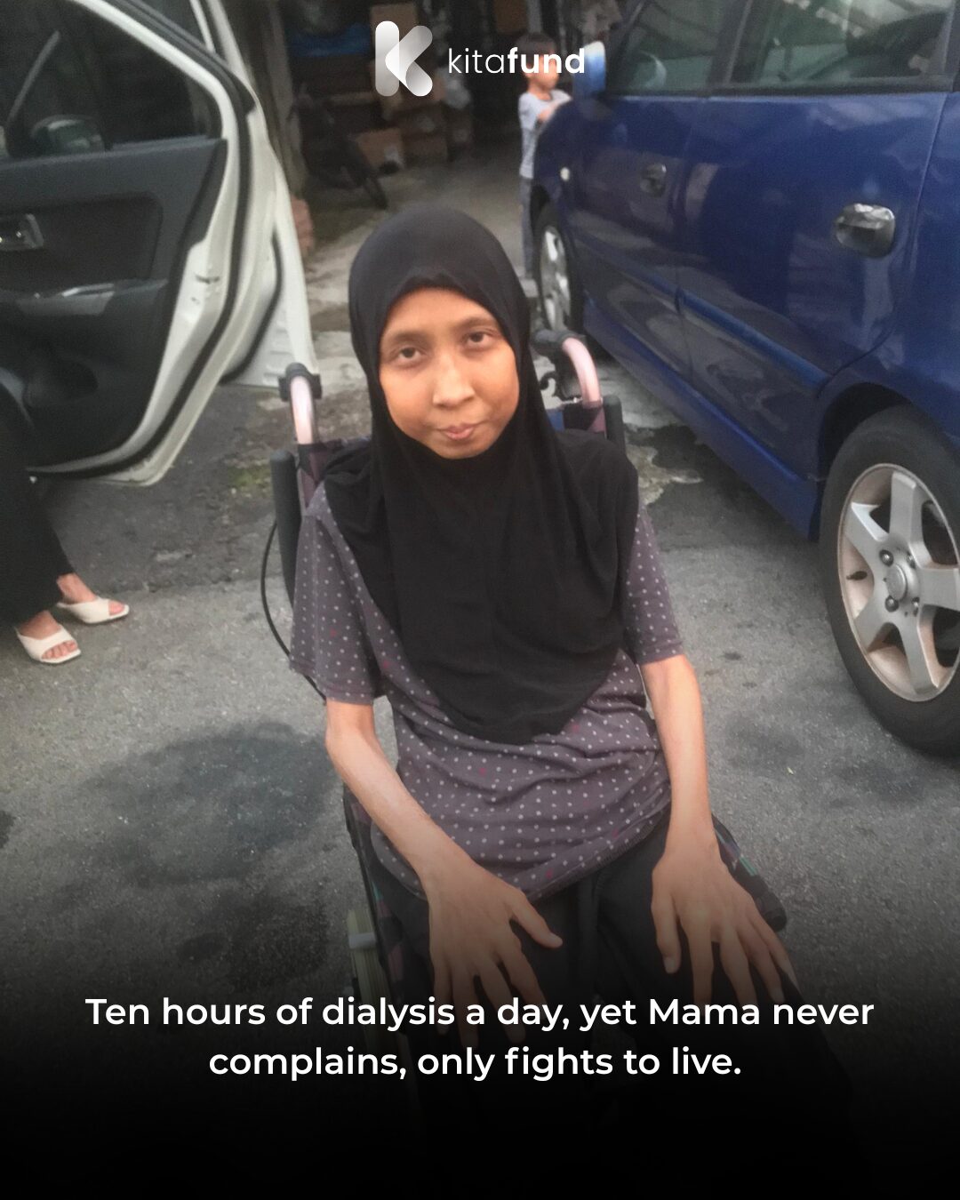 Before, Mama could walk, cook, and take care of us. But since she fell in the kitchen last year, she hasn’t been able to move. Even before that, Mama already had kidney disease. Every day she has to do dialysis at home, sometimes for up to 10 hours. I see Mama crying from the pain, but she never complains.