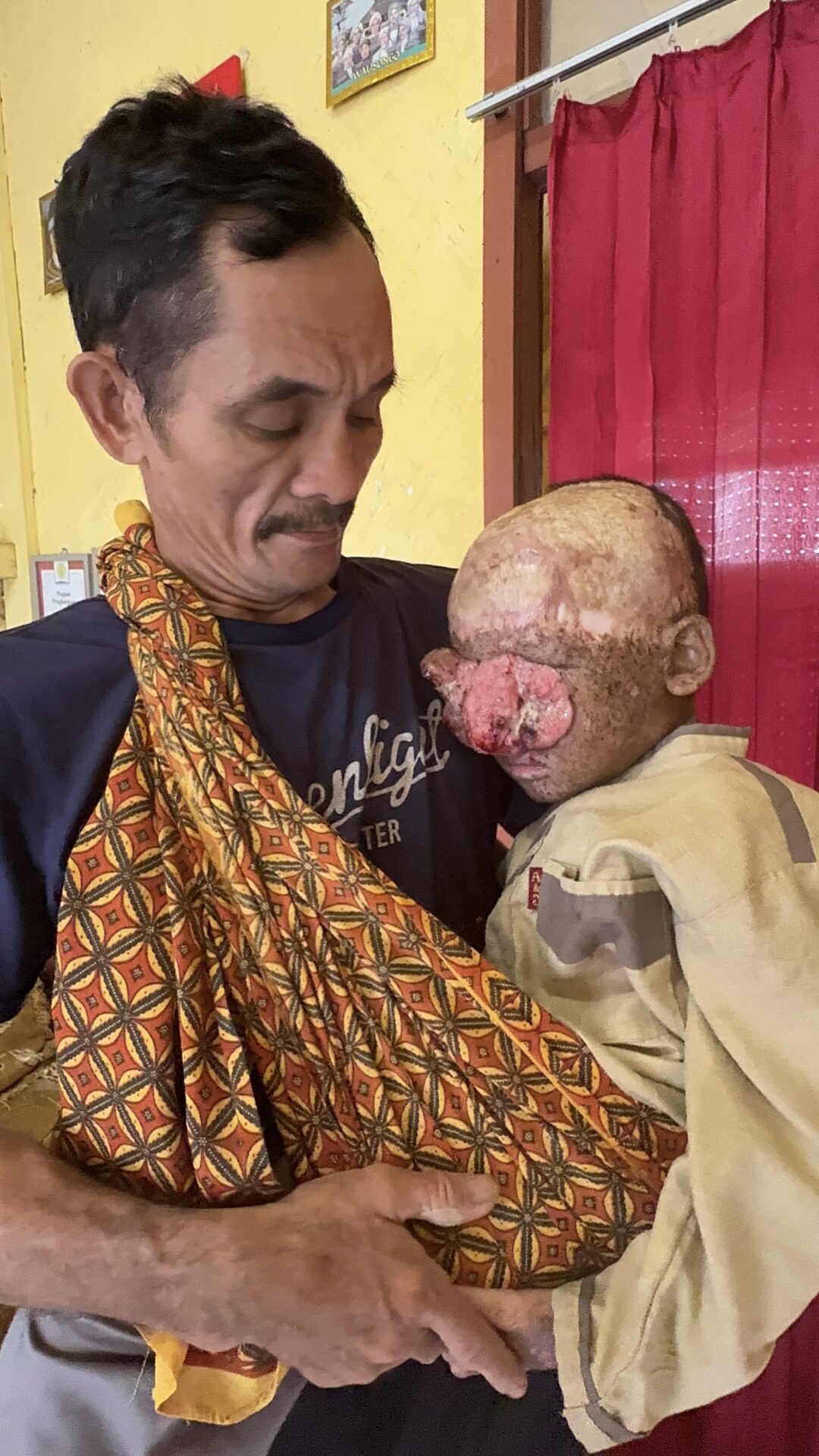 Panji has already gone through several major surgeries to stay alive. His mother, Karmanah, now faces this heavy battle alone — watching her baby suffer every day while struggling to afford his endless medical costs