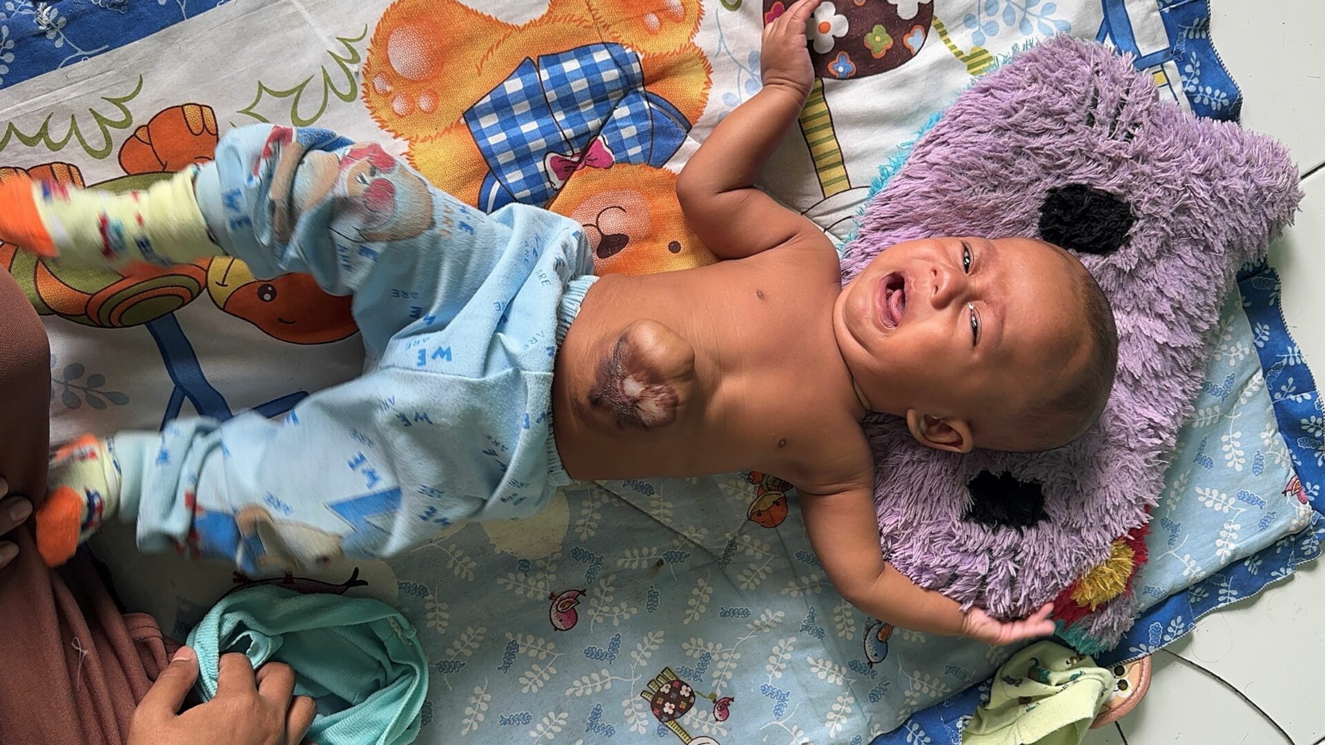 Thank you for reading this post, don't forget to subscribe!In West Java, baby Panji Syaputra was only 30 days old when doctors diagnosed him with Omphalocele — a rare birth defect where internal organs like the intestines and liver grow outside the abdomen, only covered by a thin sac.
