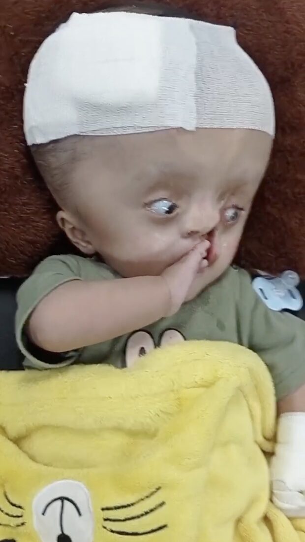 Reynald’s diet is also restricted — he can only consume special milk for Hydrocephalus patients. Tragically, he needs two tubes just to drink: one because of a cleft condition, and another inserted in his head to drain brain fluid.