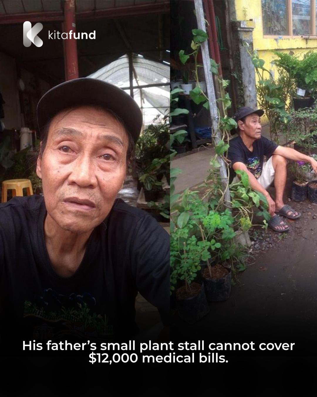 His father, Mr. Debby, is old and frail. He spends his days tending to a small plant stall, earning barely enough to cover their daily meals. Yet, when he sees his son fighting for his life, he refuses to give up. With tears in his eyes, he begs for help, because the hospital costs have reached $12,000 — an impossible amount for him to bear alone.