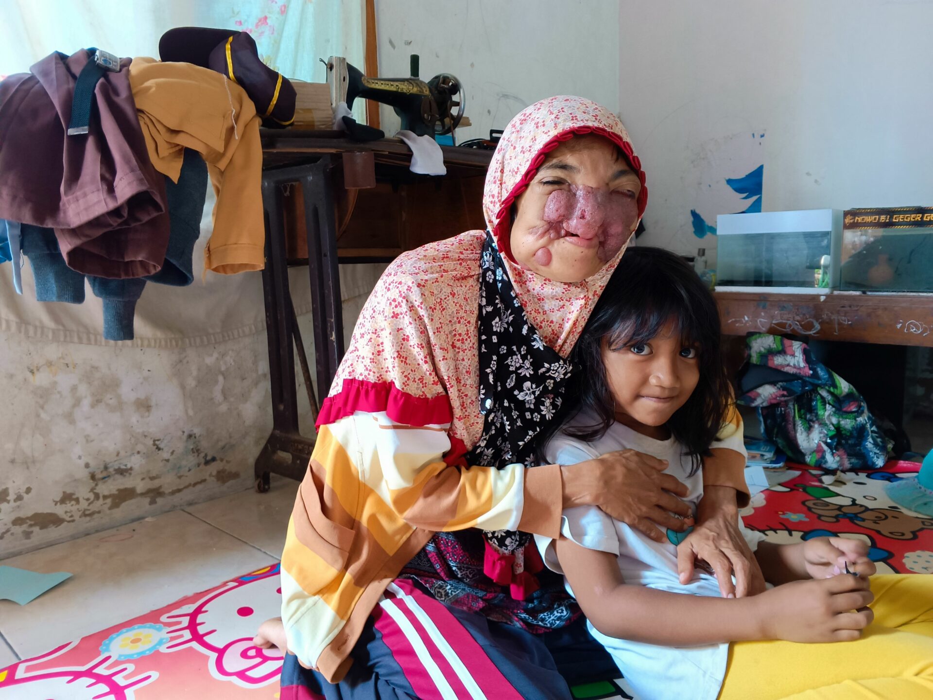 Siti Maisaroh’s life is a story of extraordinary strength. Since 2014, she has faced endless hardship — first battling breast cancer, and then, in 2016, developing a tumor on her face. The tumor has continued to grow over the years, now covering nearly half of her face.