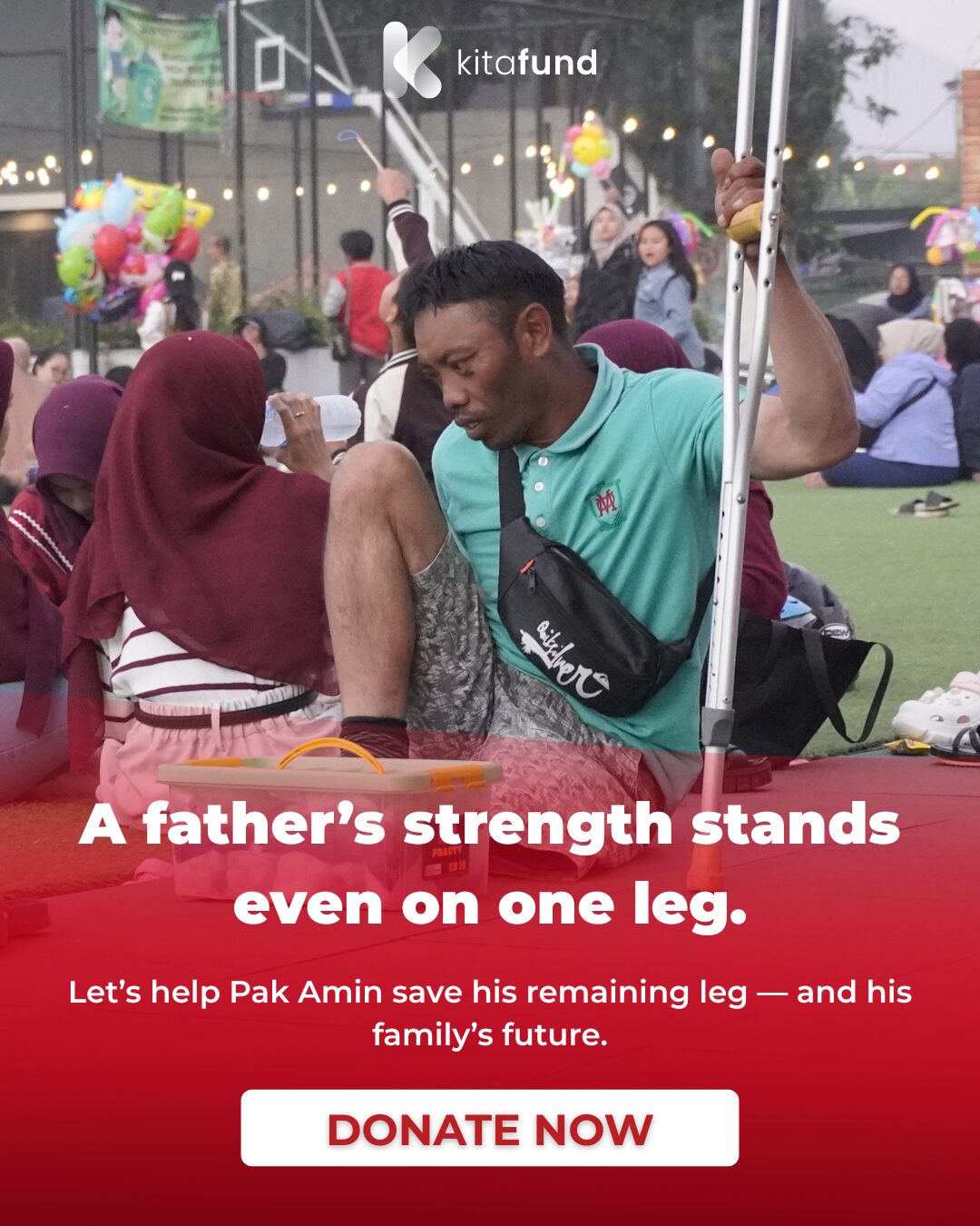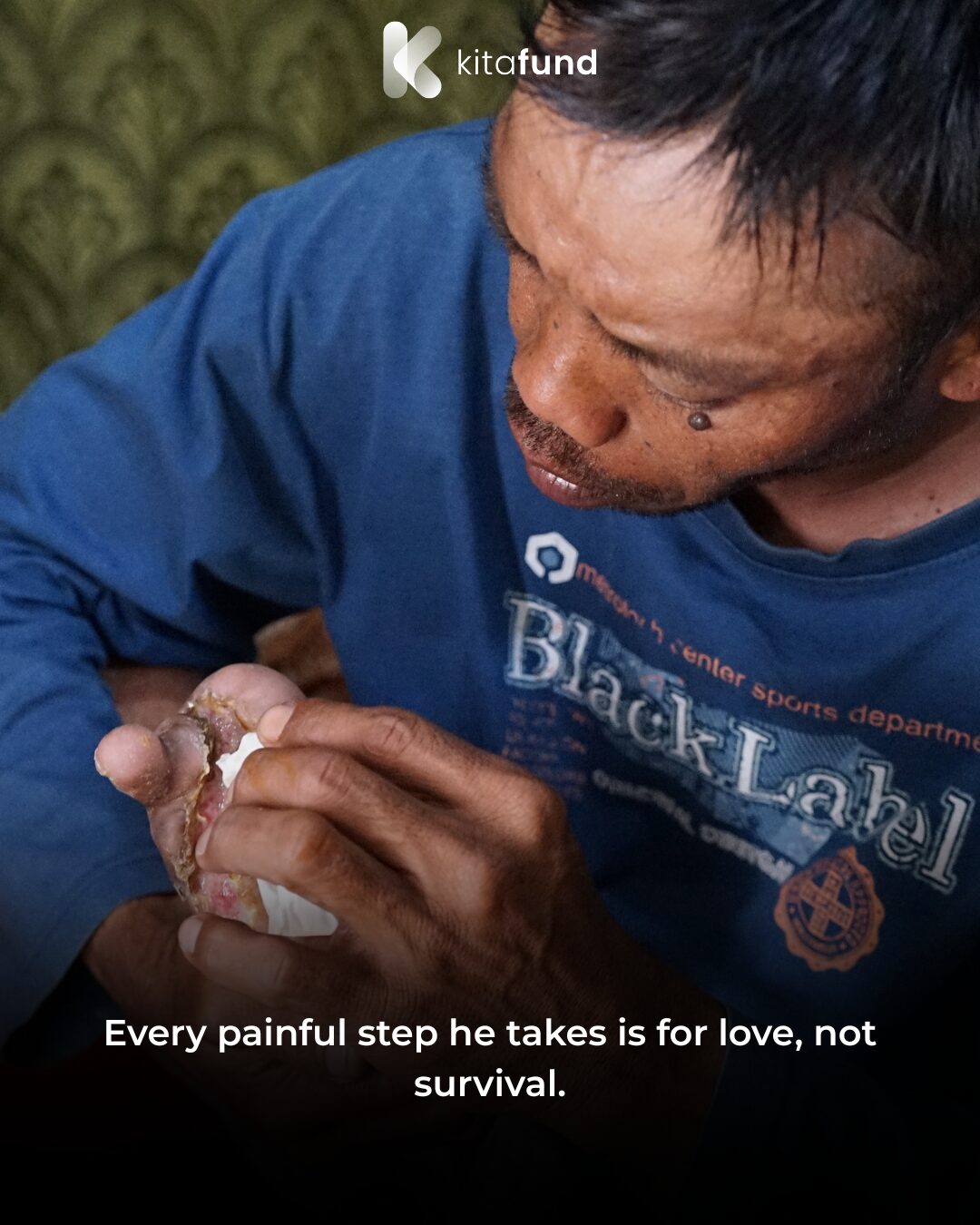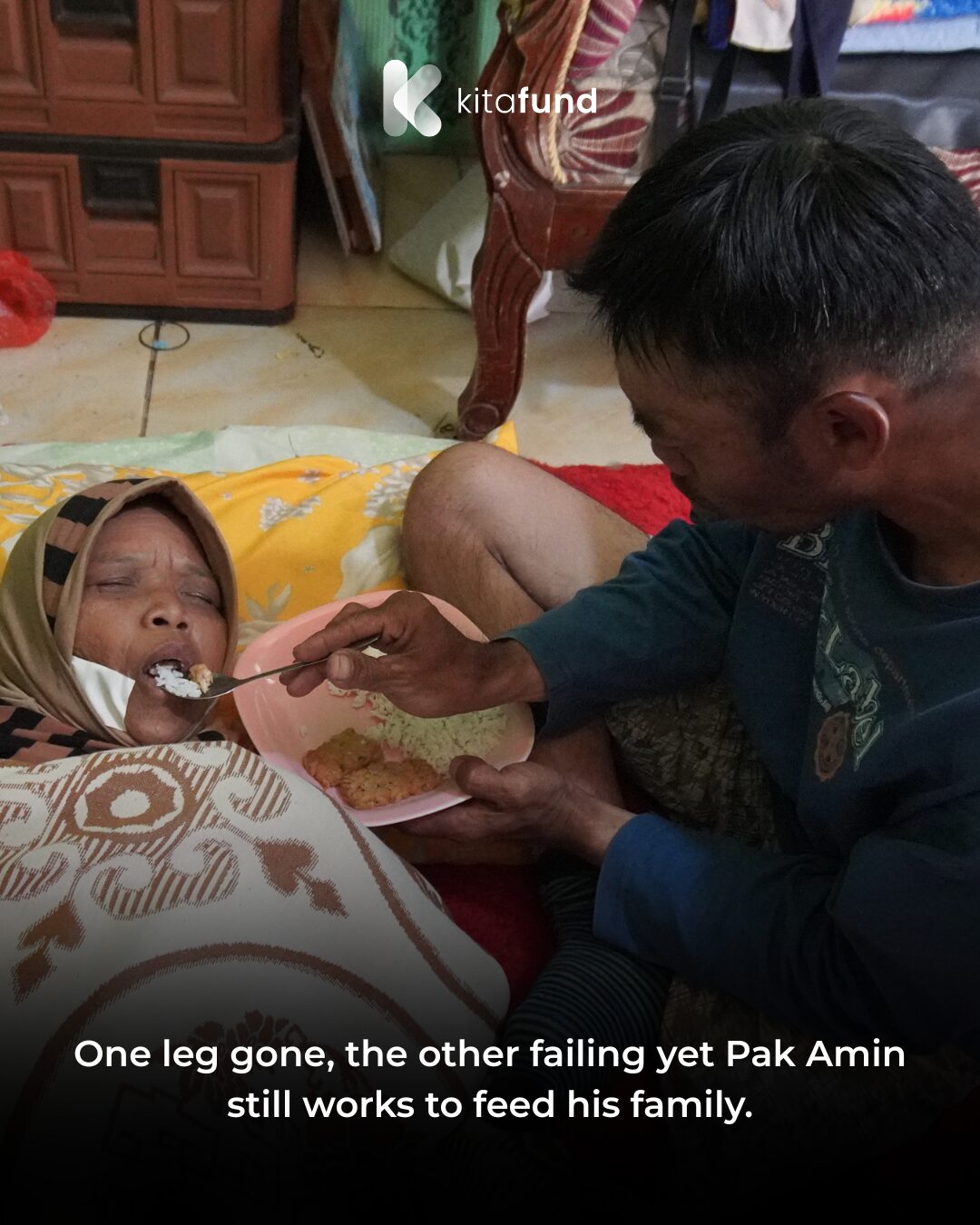 Friends, we may not know Pak Amin personally, but through his story, we can see his unbreakable determination to provide for his family — even as he struggles to stand on a single, failing leg.