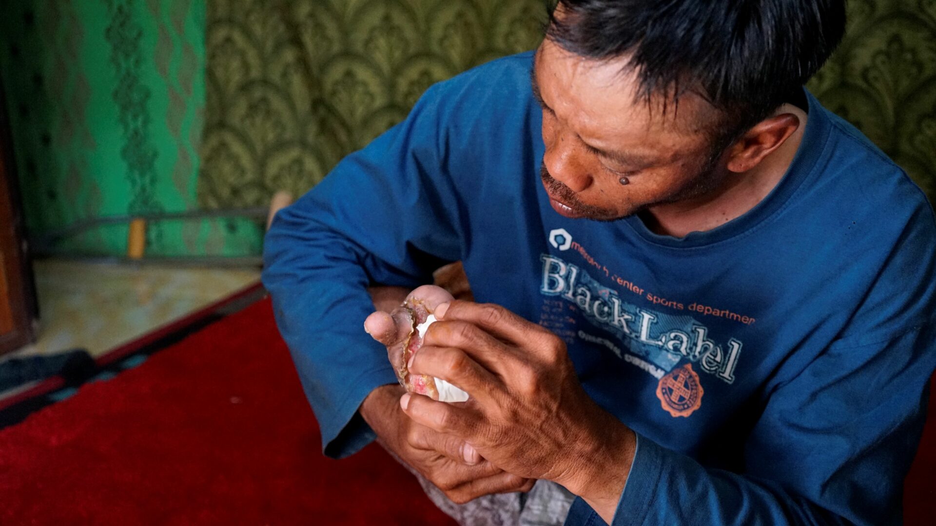 “My only hope left is this right leg. If this one gets amputated too, I don’t know how I’ll earn a living,” said Pak Amin, staring sadly at his remaining leg that has begun to decay…