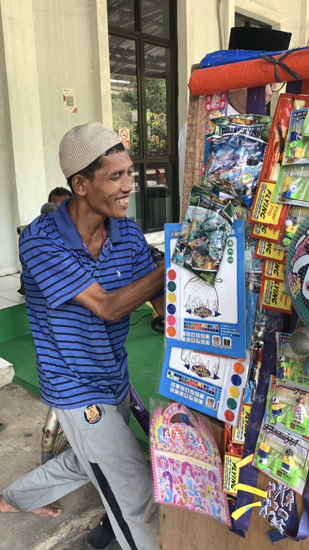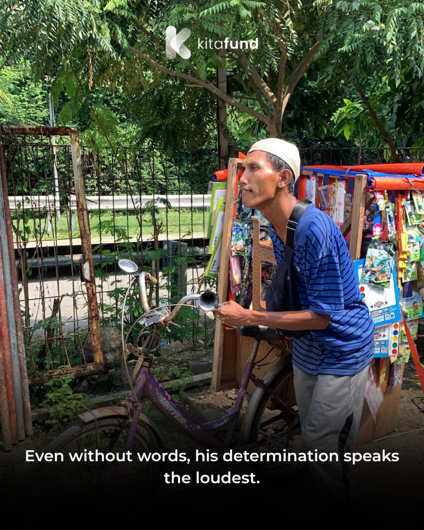 Born with a physical disability, a motor nerve disorder, and unable to speak, Bowo’s life has never been easy. Yet, with an old, often-broken bicycle, he works hard for his family by selling toys on the streets from morning to evening, sometimes walking dozens of kilometers, often returning home empty-handed.