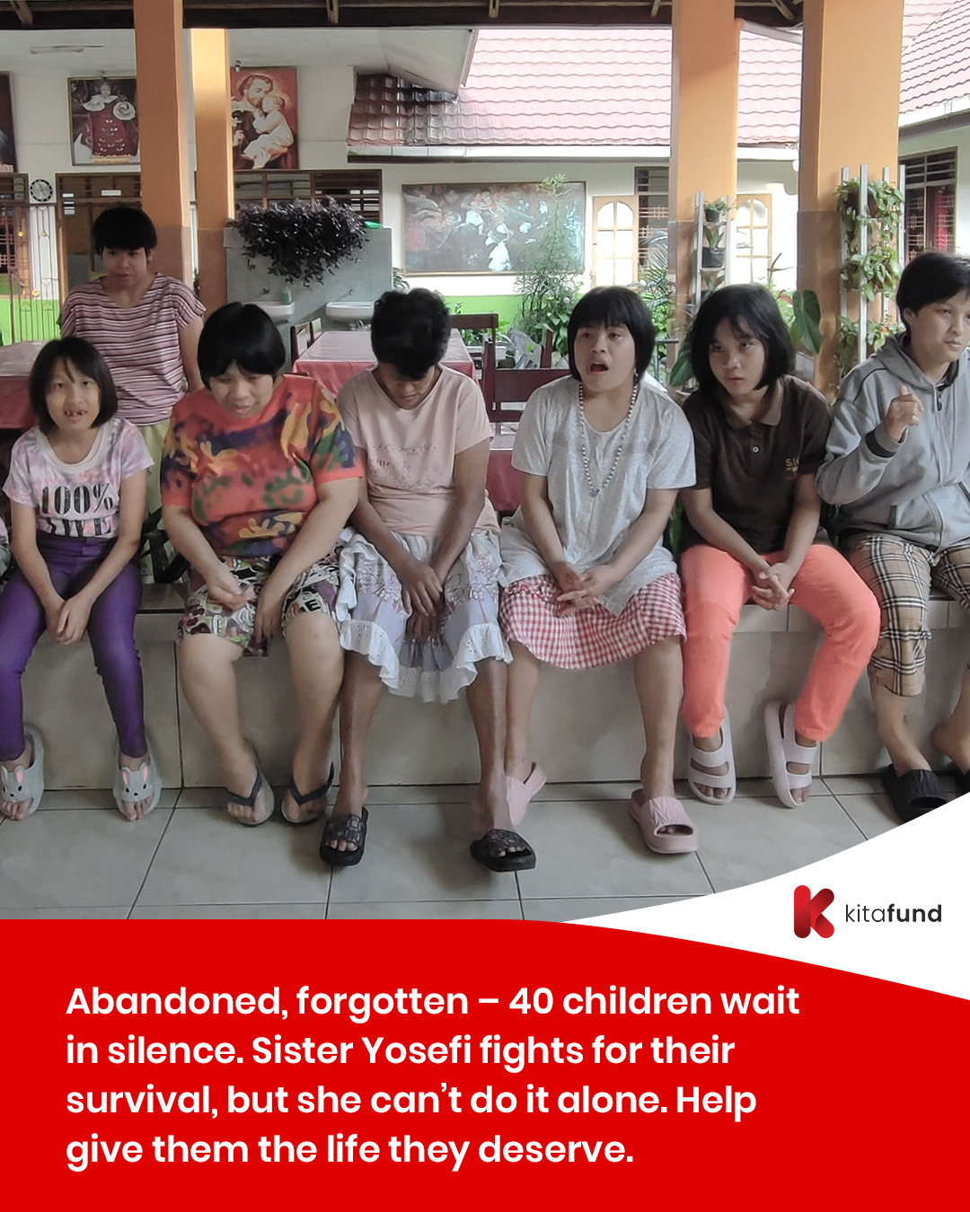 At Panti Santa Anna, 40 children with disabilities live in difficult conditions, abandoned by their families after being placed there for education.
